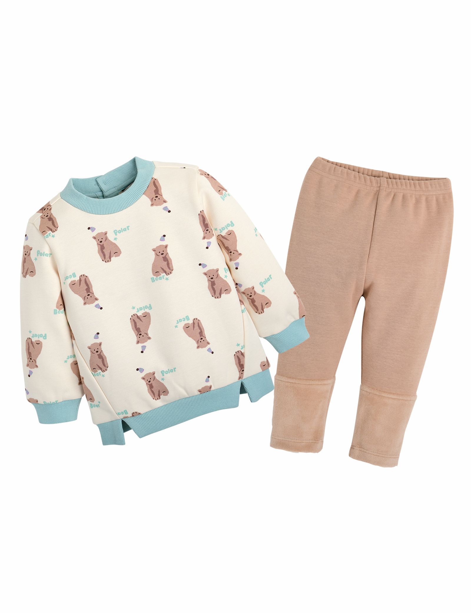 롱티에 레깅스 세트로 겨울철 활용도가 높은 상하복입니다. 귀여운 나염지로 포인트를 주었으며 키모소재의 레깅스는 다른 아이템과도 코디하여 활용하기 좋습니다.