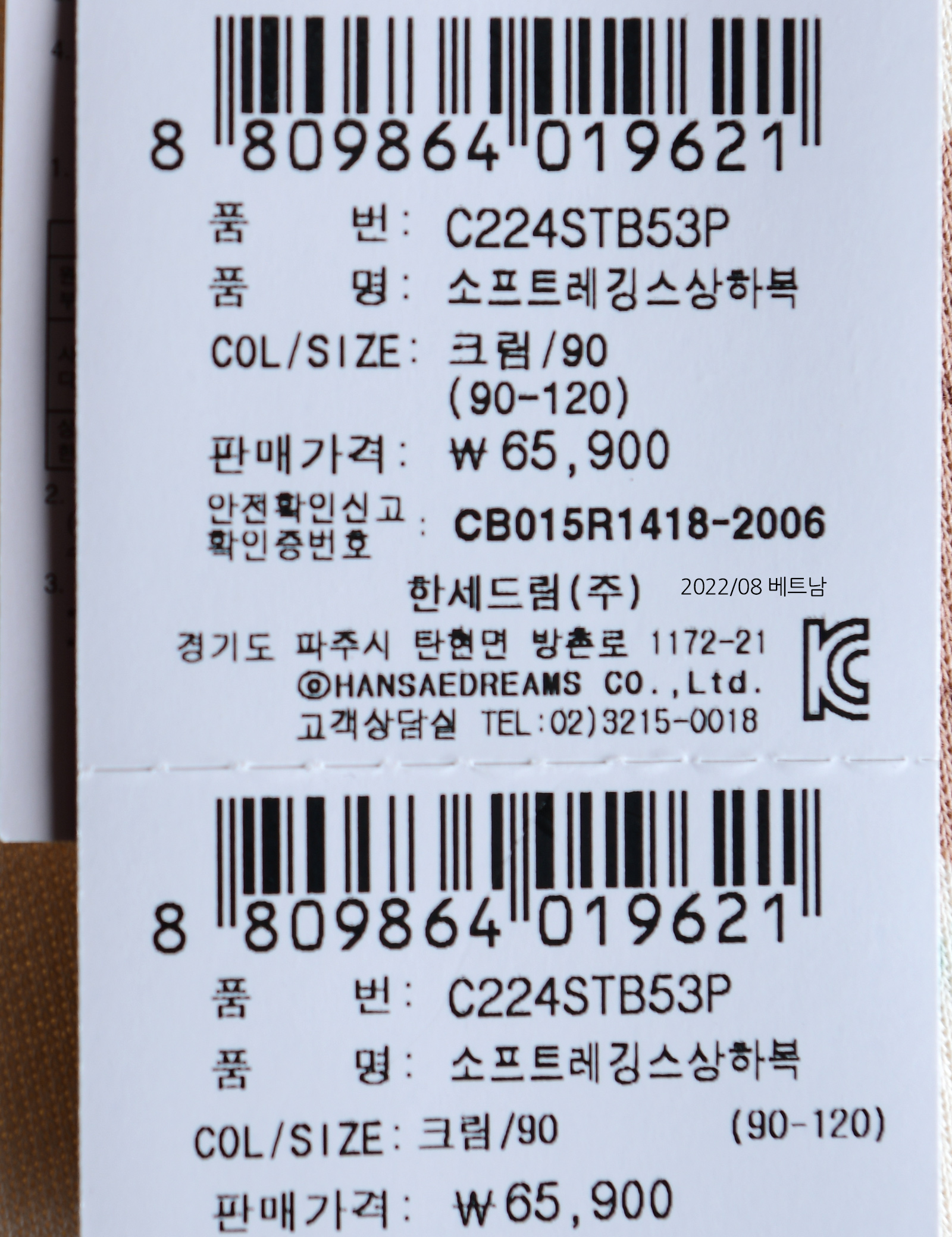 | 제조연월 | 202208 |