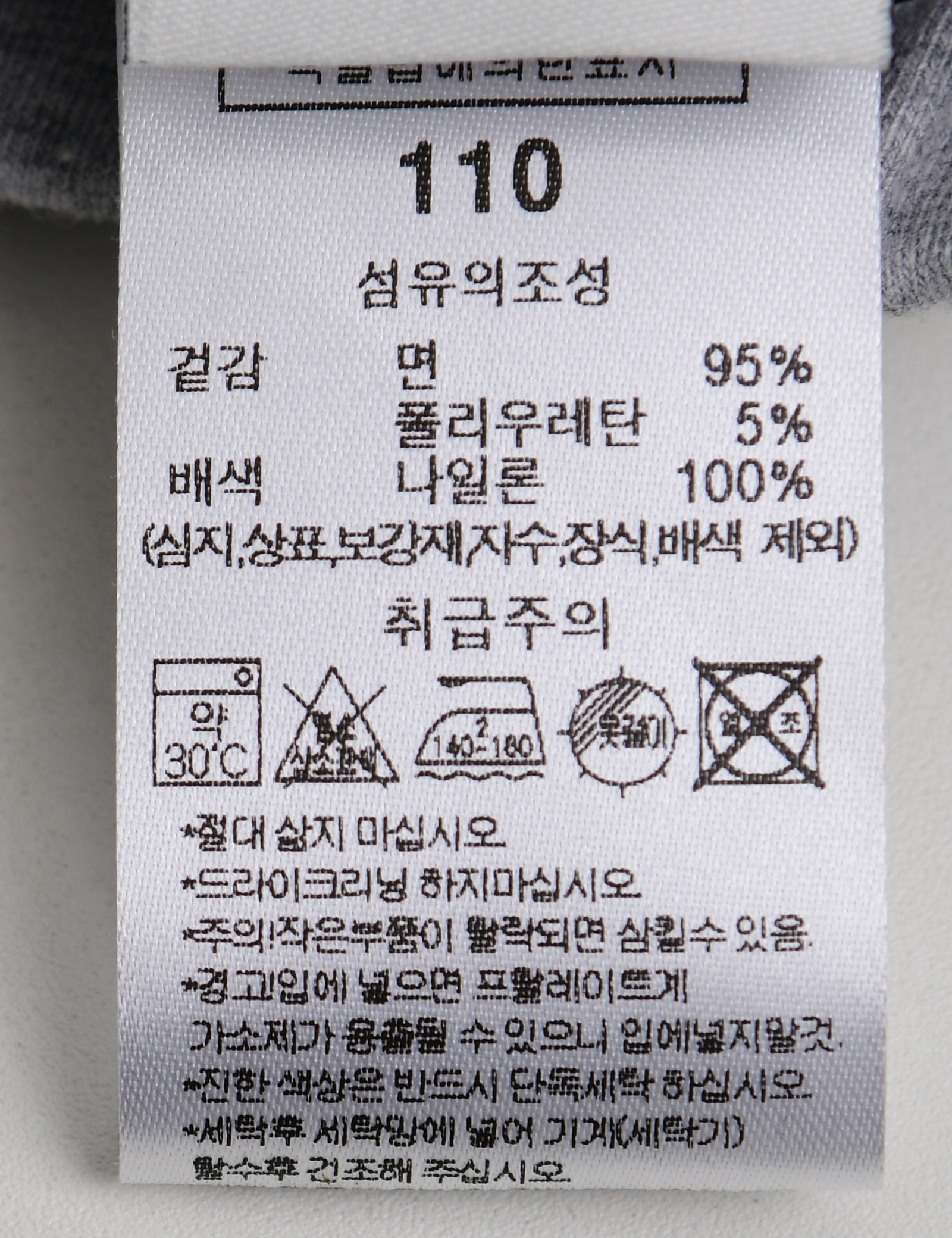 브랜드 홈 바로가기| 제품소재 | (겉감)면95%,폴리우레탄5%(배색)나일론100% |
