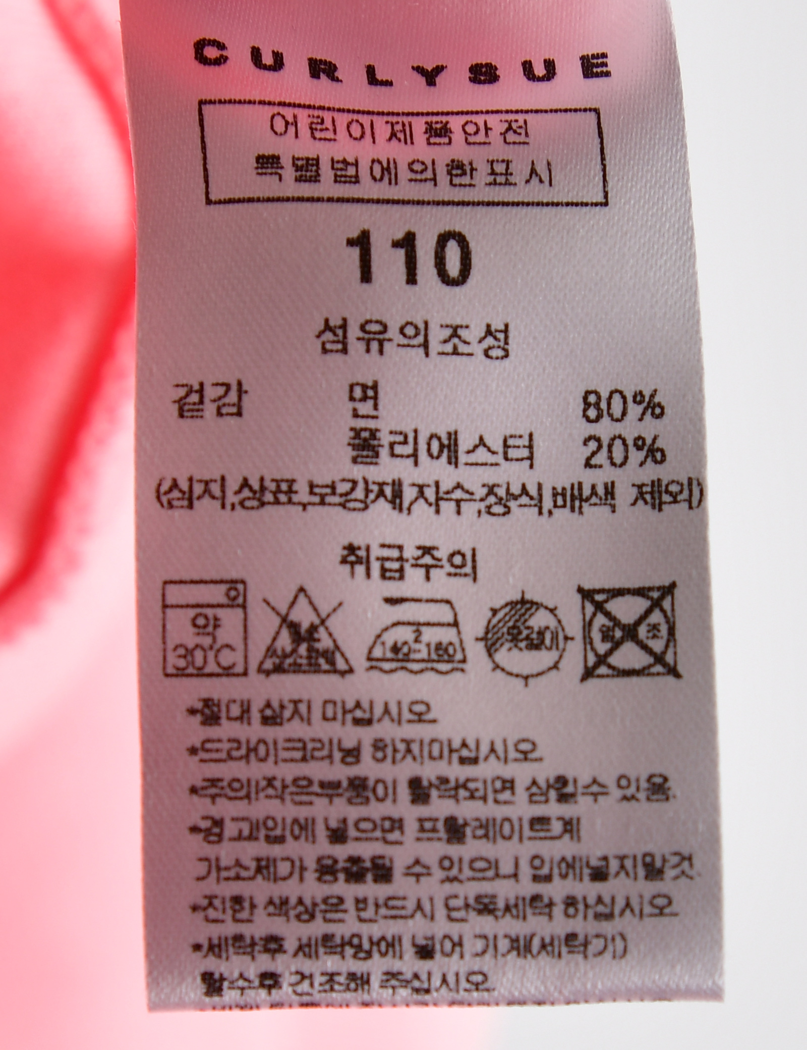 | 세탁방법 및 취급시 주의사항 | 본 세품은 손세탁 하십시오(케어라벨 참고) |