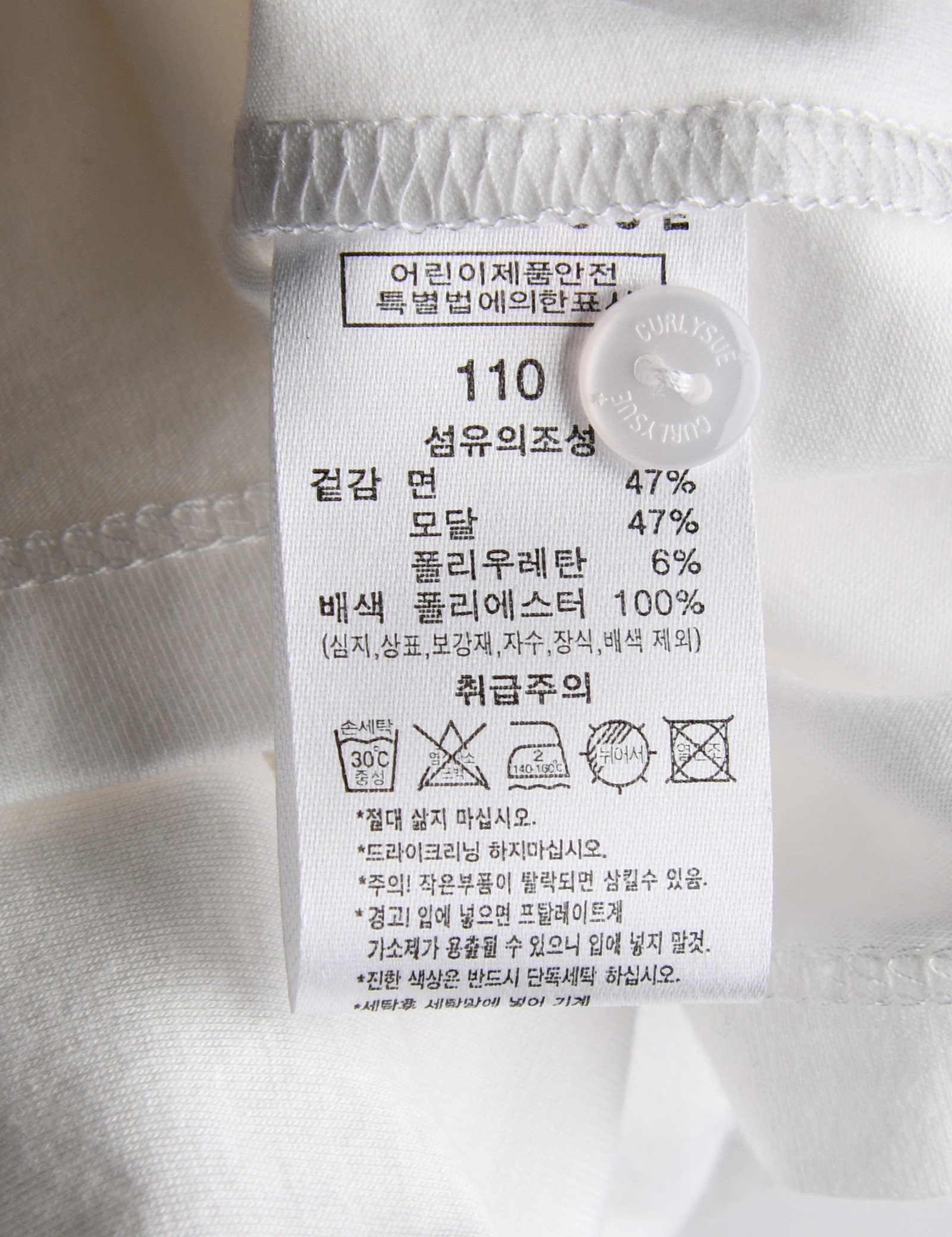 | 세탁방법 및 취급시 주의사항 | 본 세품은 손세탁 하십시오(케어라벨 참고) |