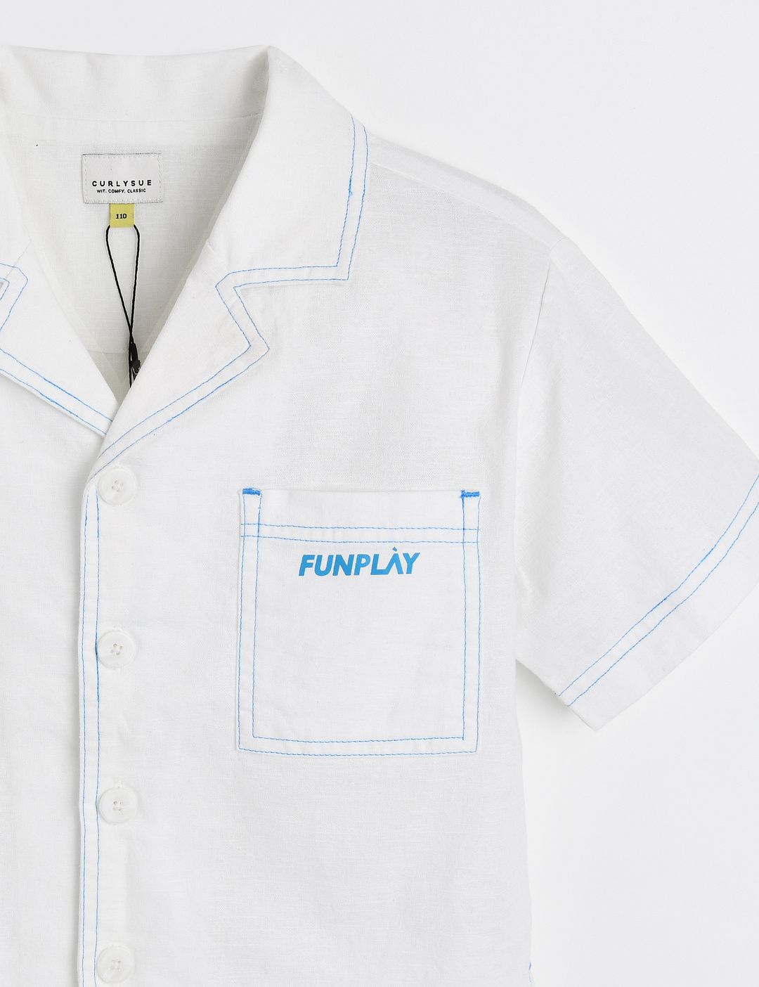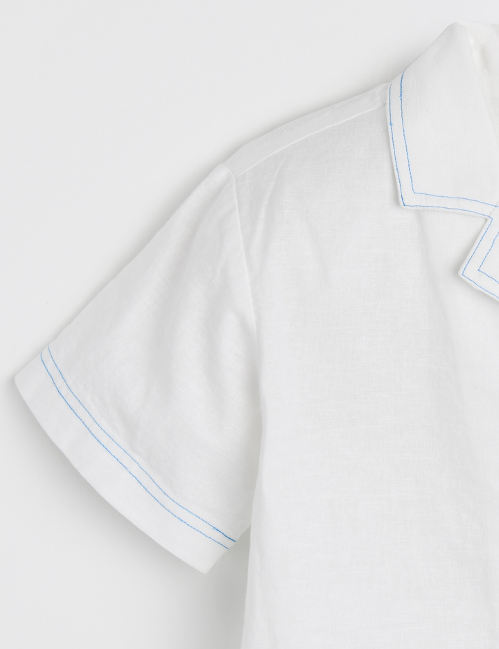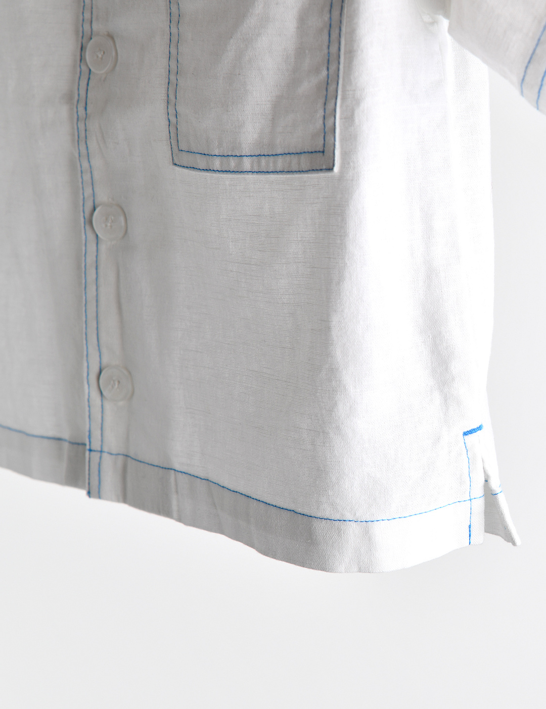 코튼, 린넨 혼방 원단으로 시원한 착용감의 고급스러운 셔츠입니다. 깔끔한 화이트 컬러에 시원한 블루 컬러 스티치배색 포인트로 단정하면서도 캐쥬얼한디자인입니다.