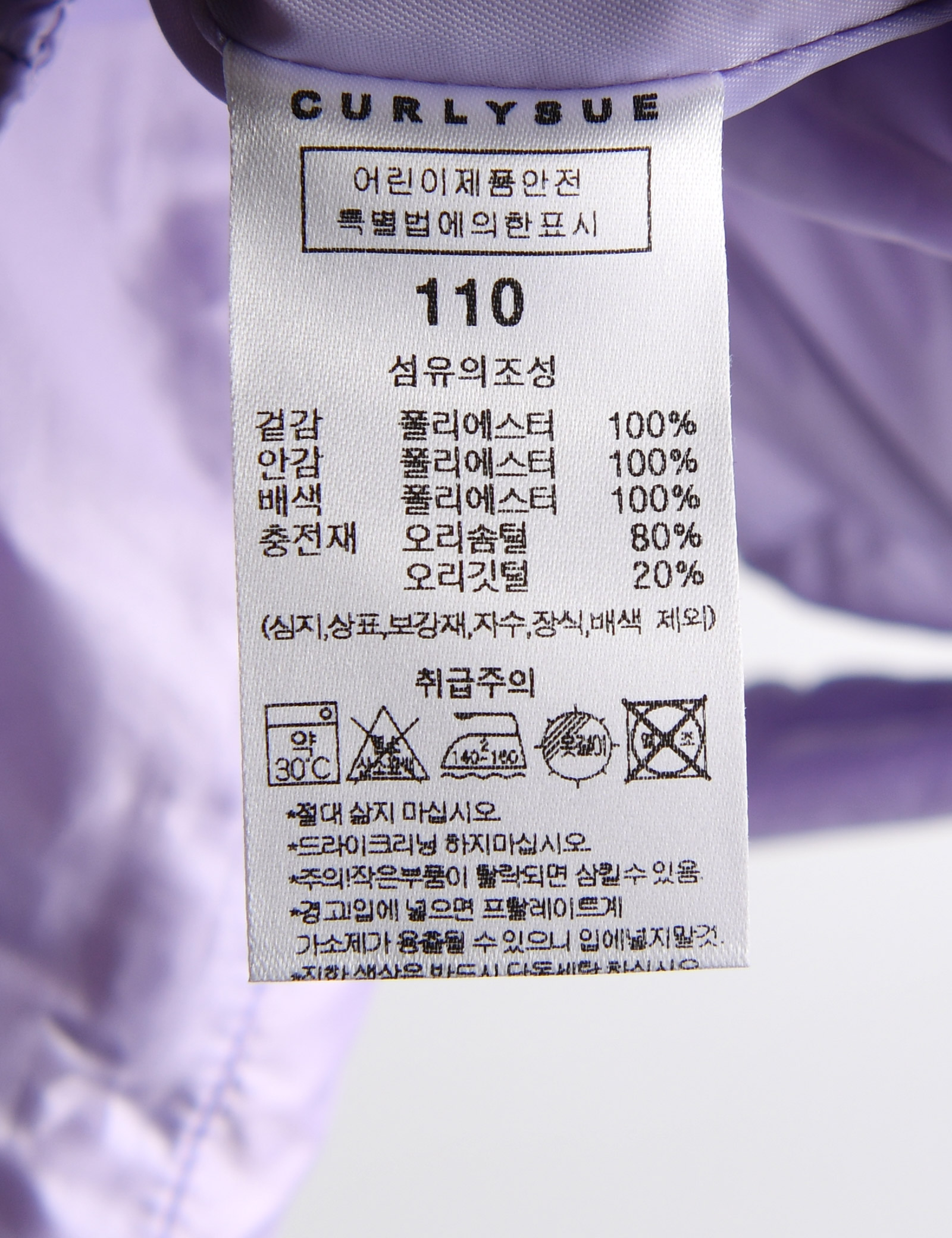 | 세탁방법 및 취급시 주의사항 | 본 세품은 손세탁 하십시오(케어라벨 참고) |