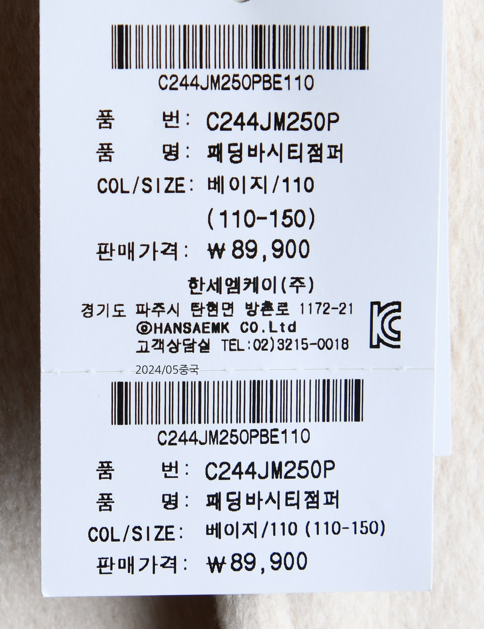| 상품코드 | C244JM250P |