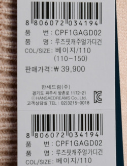 | 세탁방법 및 취급시 주의사항 | 케어라벨의 세탁방법대로 세탁해주세요. |