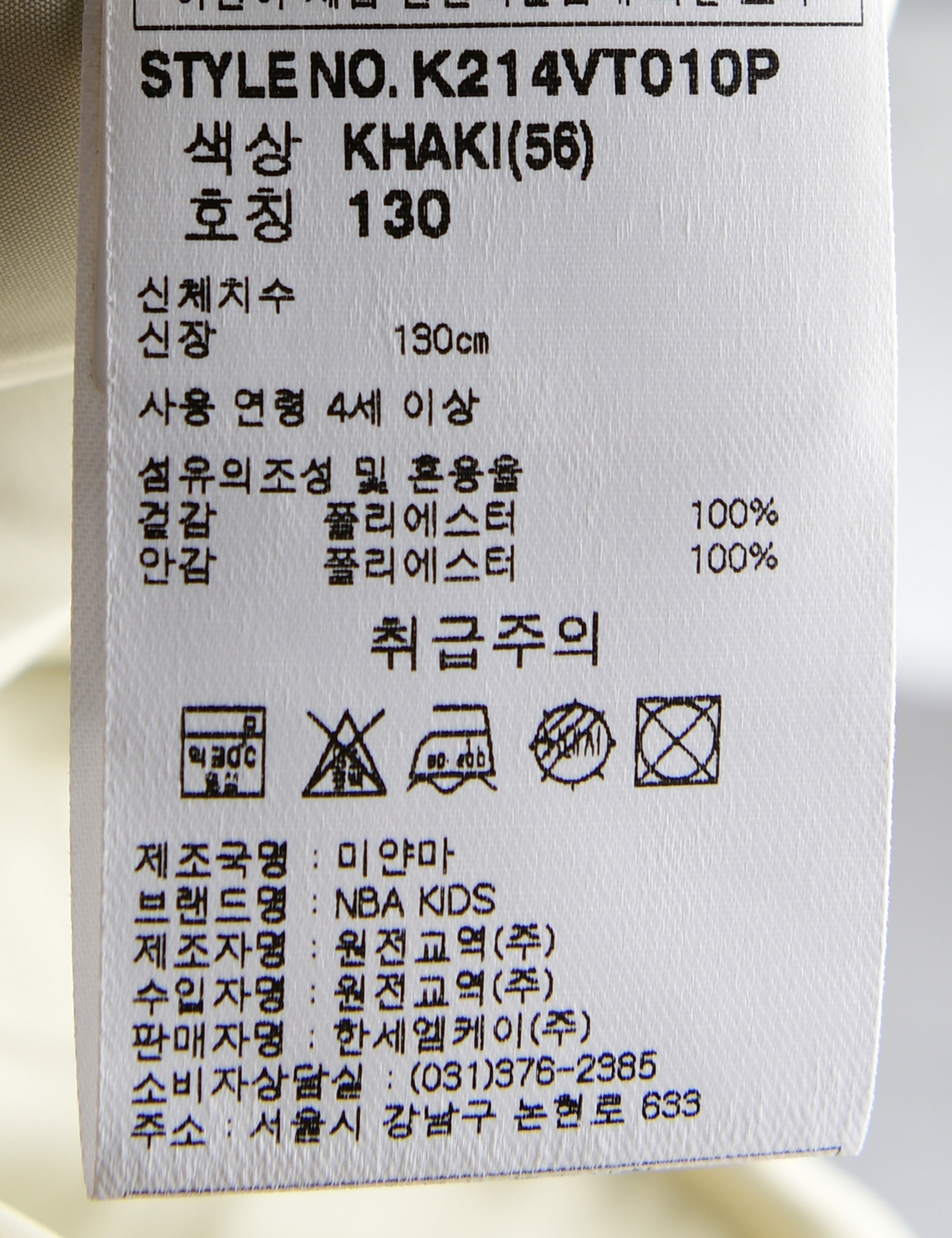 | 세탁방법 및 취급시 주의사항 | 본 세품은 손세탁 하십시오(케어라벨 참고) |