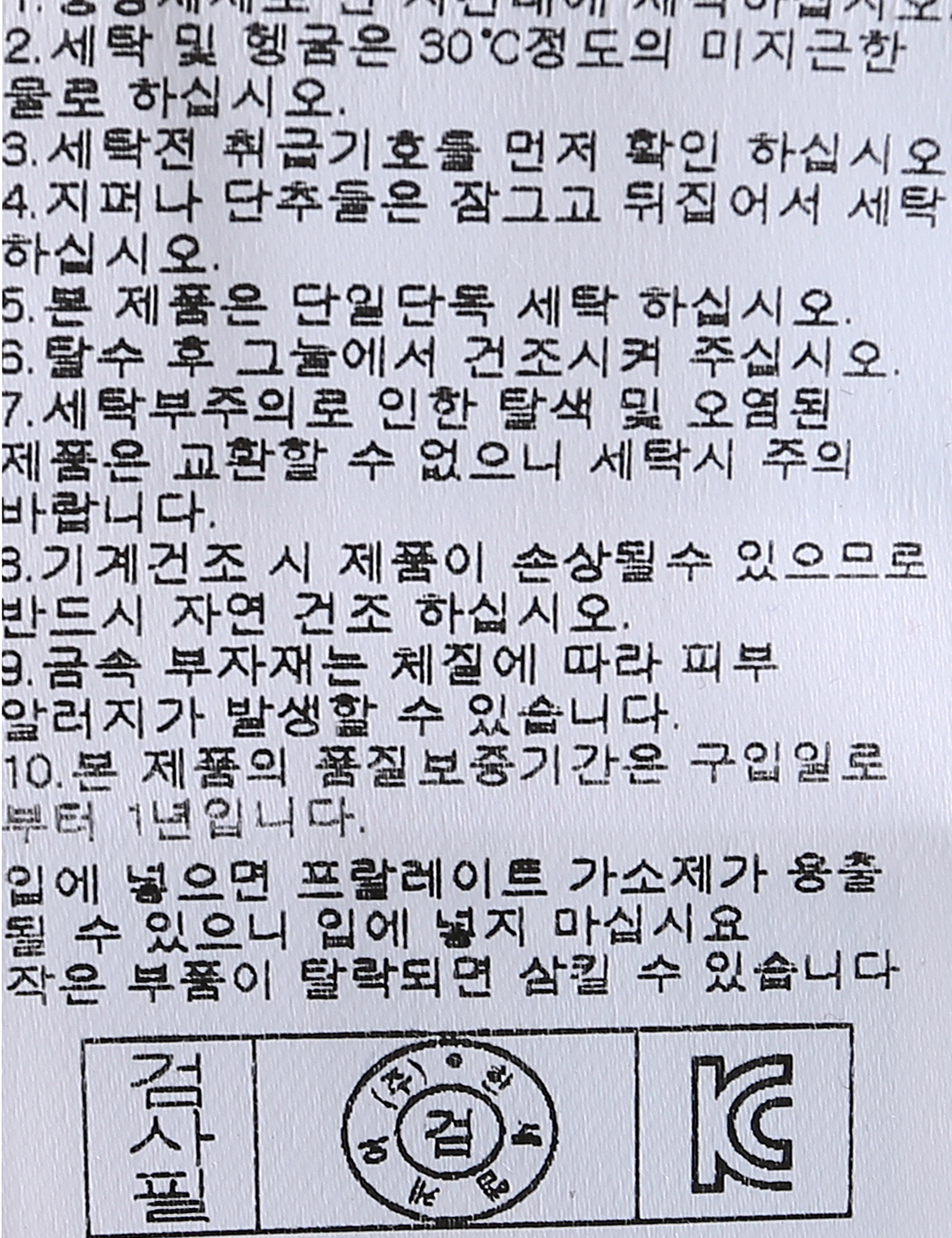 | 세탁방법 및 취급시 주의사항 | 중성세제로 단 시간내에 세탁하십시오.(케어라벨참고) |