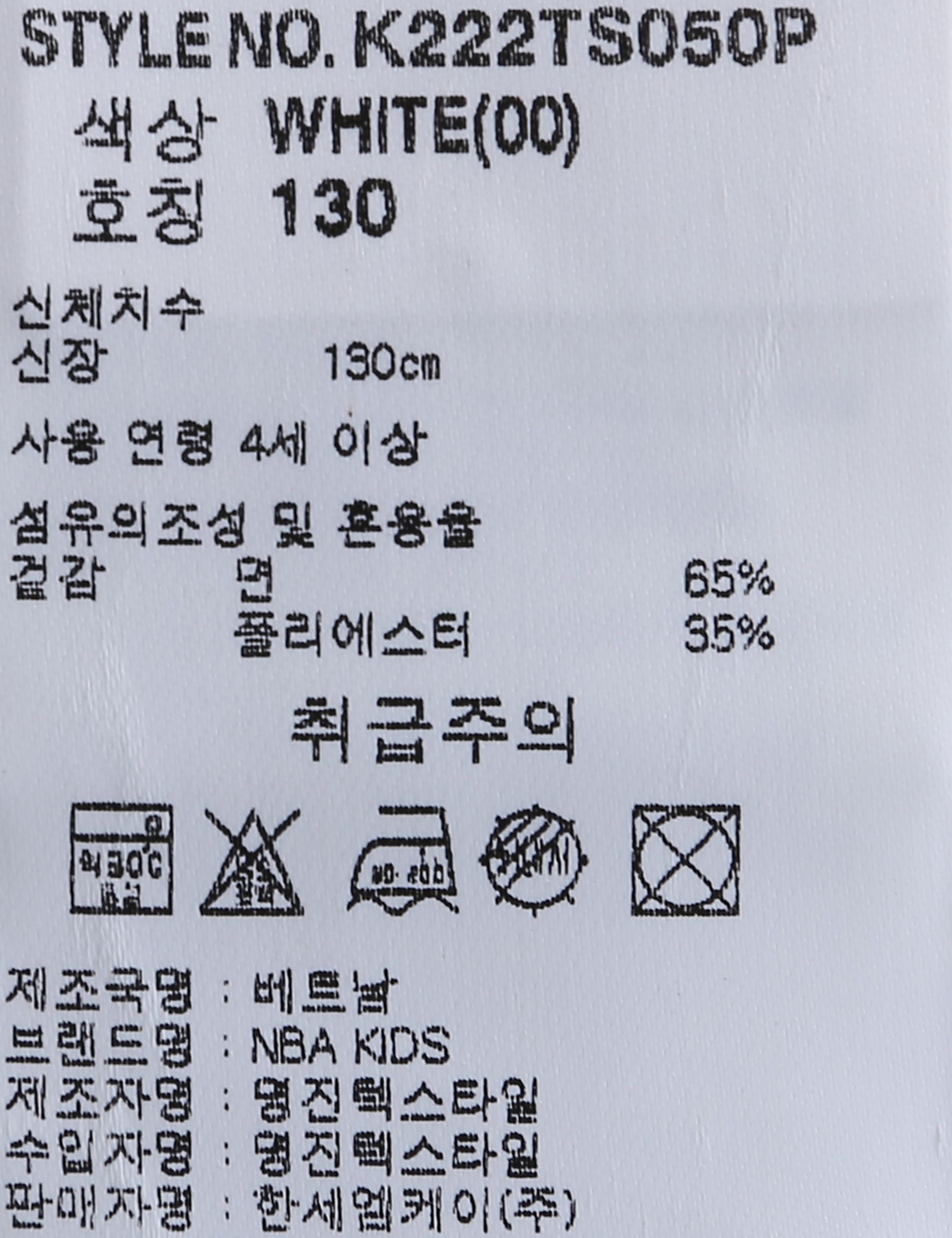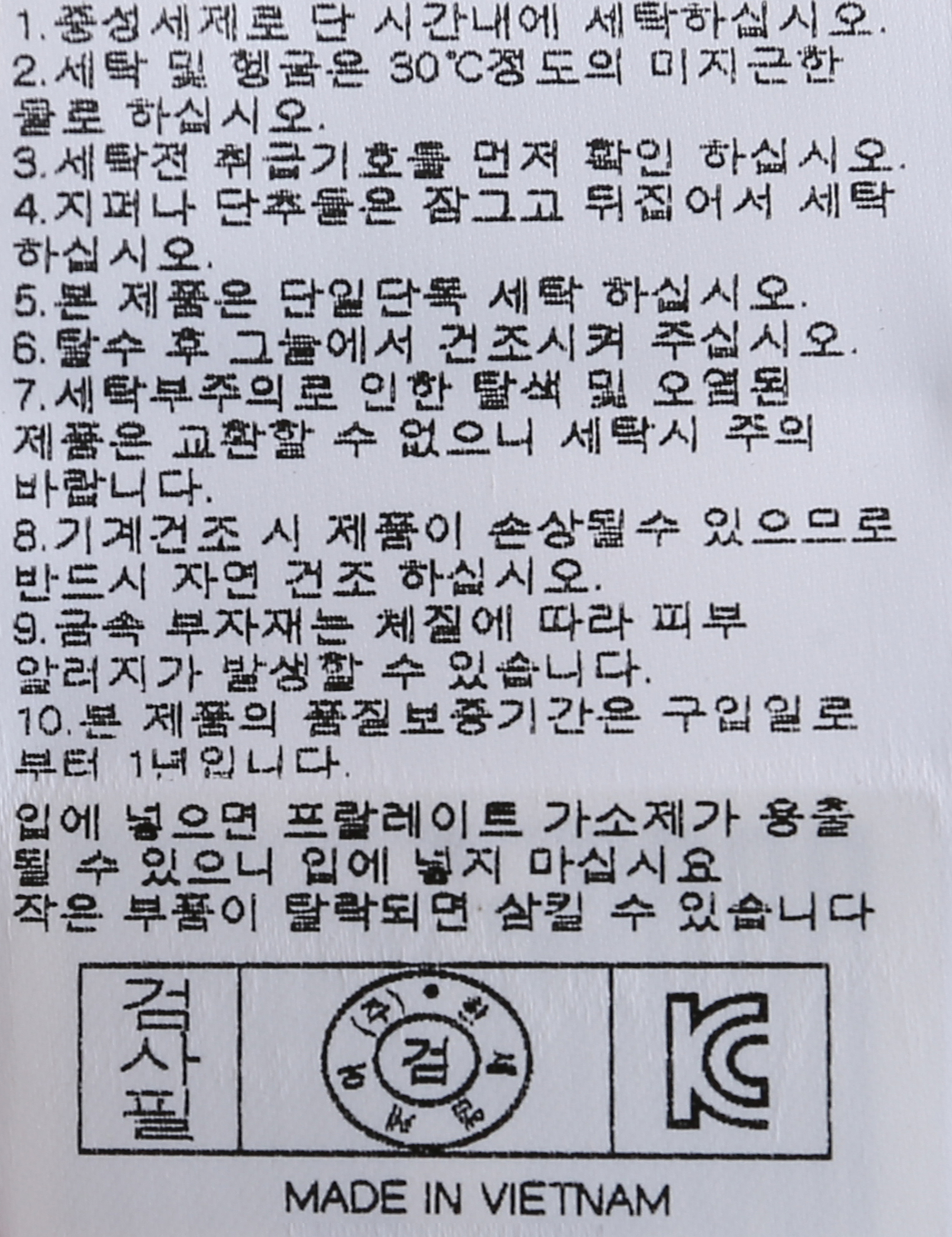 | 세탁방법 및 취급시 주의사항 | 중성세제로 단 시간내에 세탁하십시오.(케어라벨참고) |