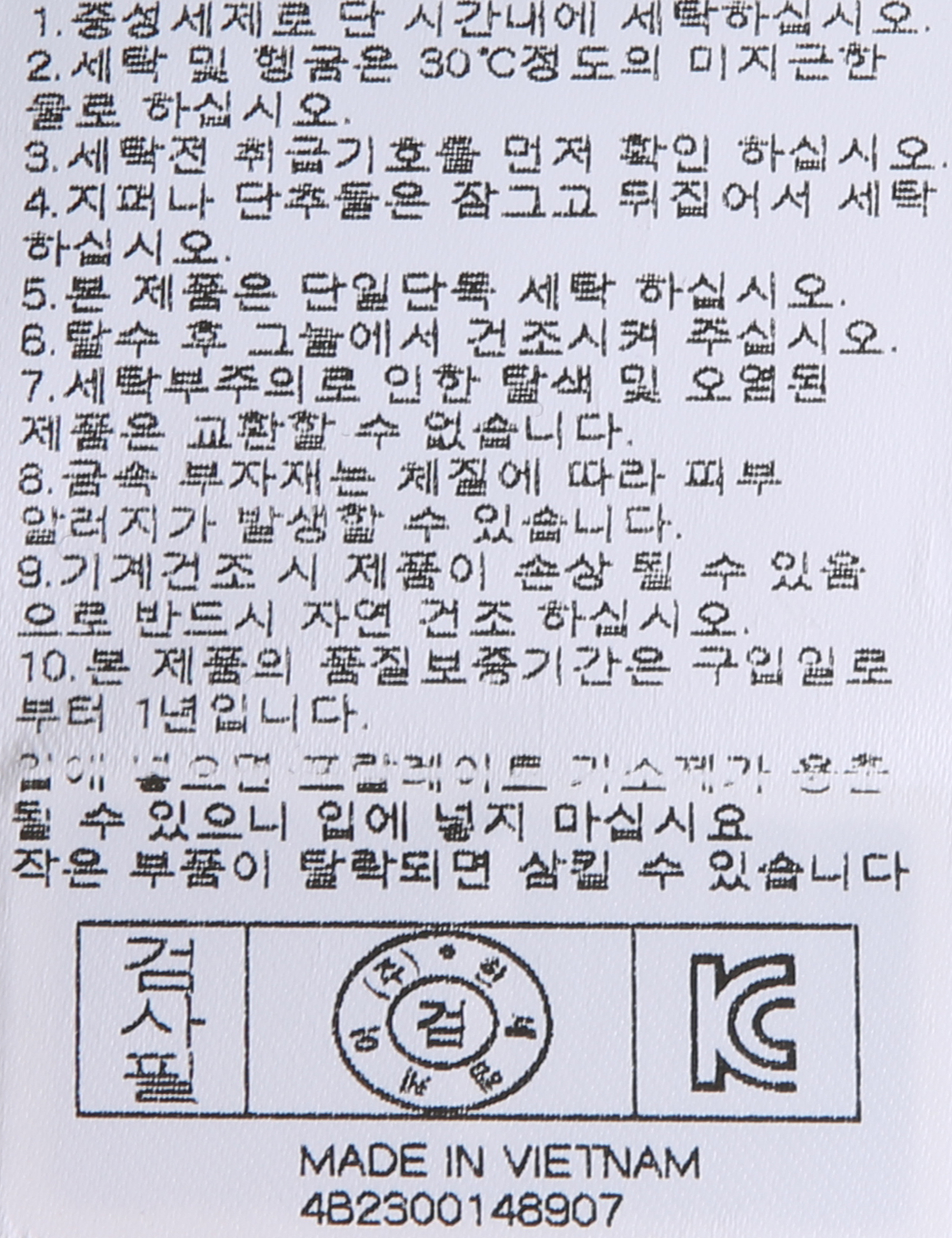 | 세탁방법 및 취급시 주의사항 | 본 제품은 손세탁 하십시오.(케어라벨참고) |