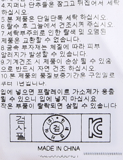 | 세탁방법 및 취급시 주의사항 | 본 제품은 손세탁 하십시오.(케어라벨참고) |