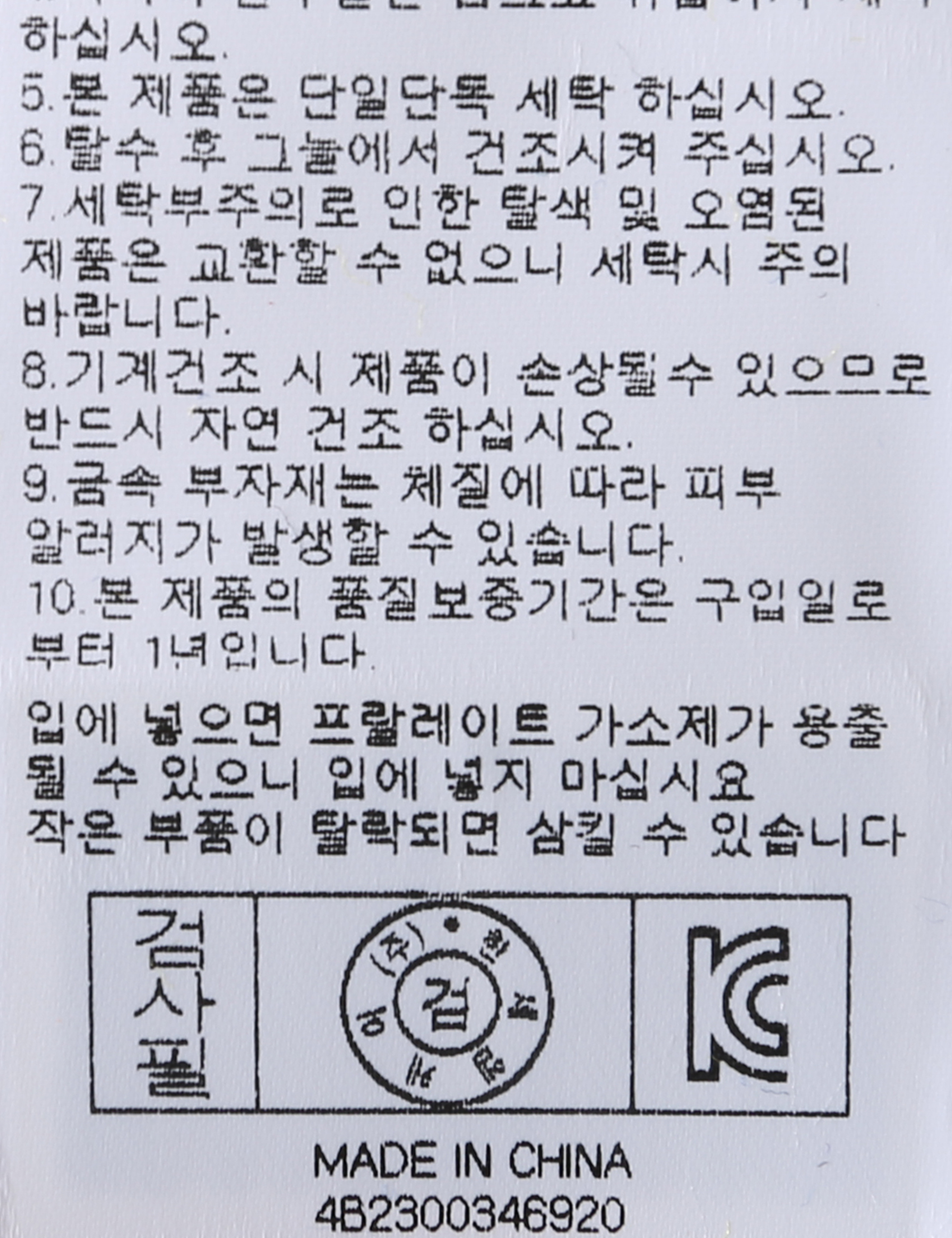 | 세탁방법 및 취급시 주의사항 | 중성세제로 단 시간내에 세탁하십시오.(케어라벨참고) |