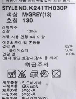 | 세탁방법 및 취급시 주의사항 | 중성세제로 단 시간내에 세탁하십시오.(케어라벨참고) |