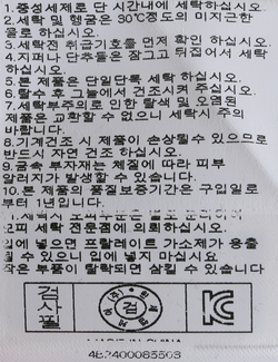 세탁방법 및 취급시 주의사항 중성세제로 단 시간내에 세탁하십시오.(케어라벨참고)