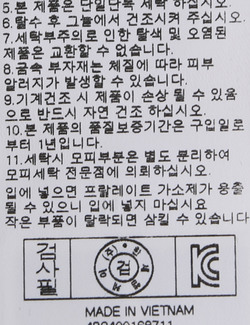 | 취급시 주의사항 | 본 제품은 손세탁 하십시오.(케어라벨참고) |