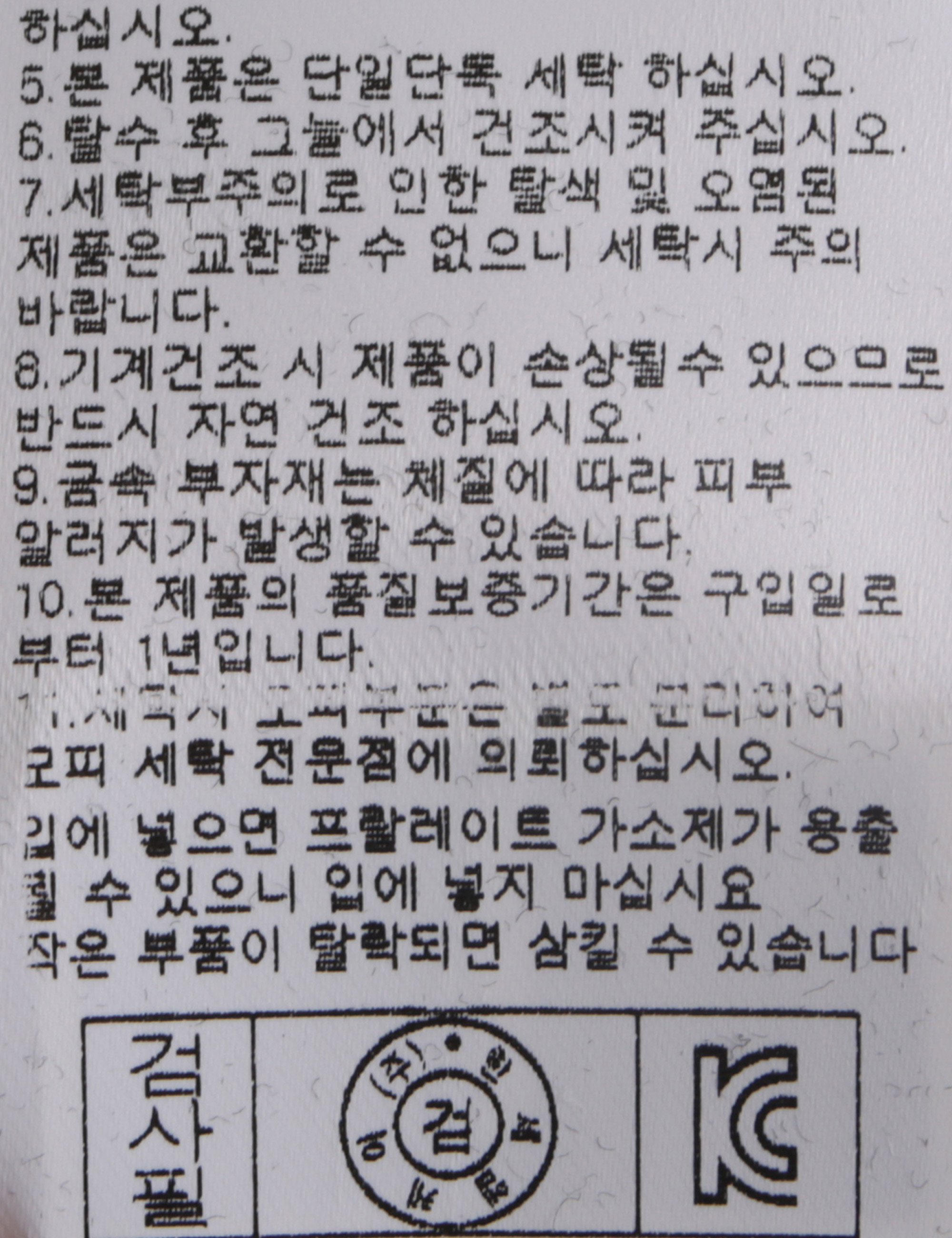 | 세탁방법 및 취급시 주의사항 | 중성세제로 단 시간내에 세탁하십시오.(케어라벨참고) |