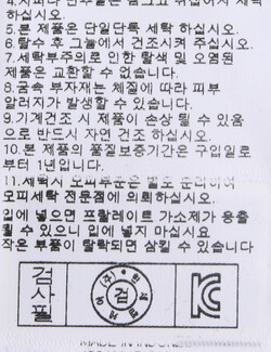 | 세탁방법 및 취급시 주의사항 | 본 제품은 손세탁 하십시오.(케어라벨참고) |