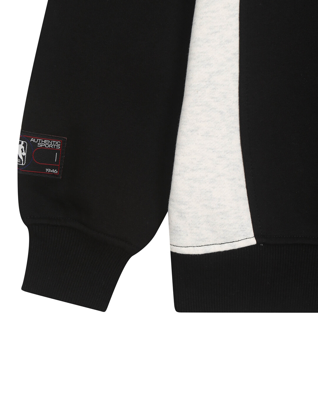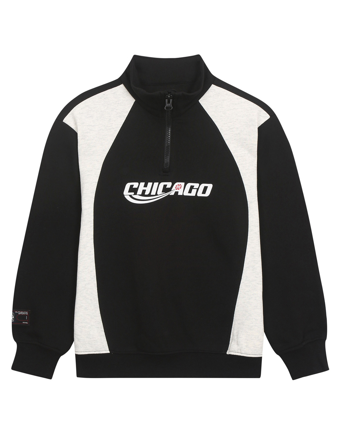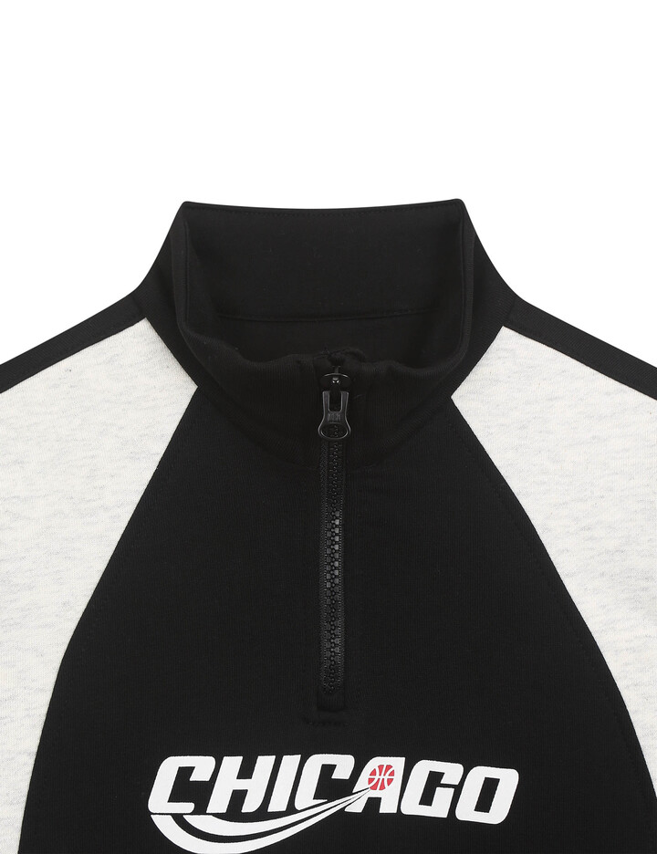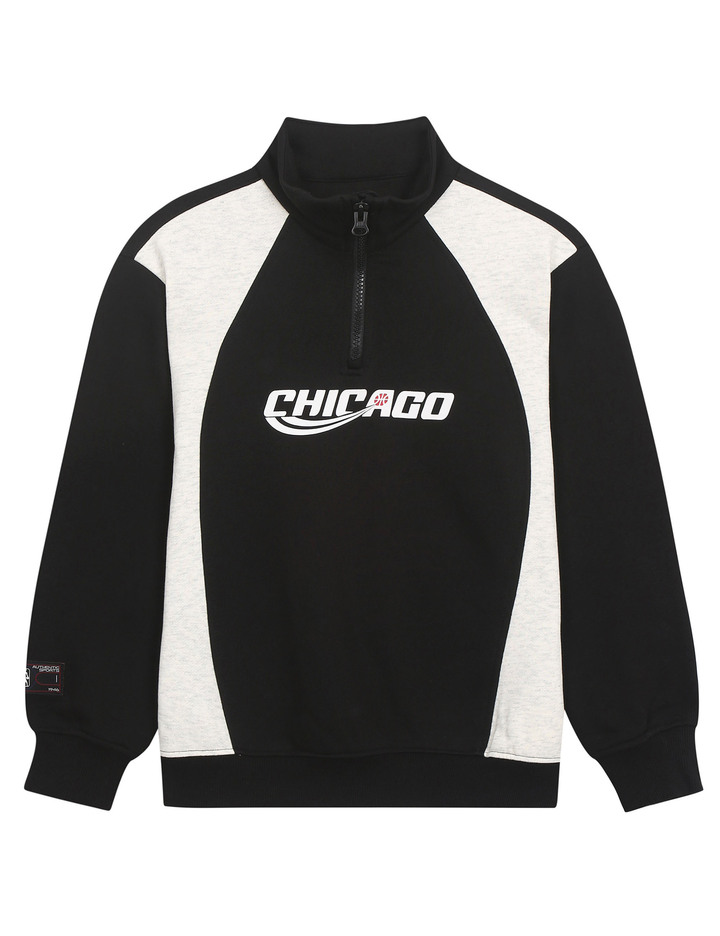 -목을감싸는 하이넥 디자인에 팀로고 오브제가 조화로운 반집업 맨투맨