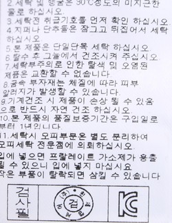 | 세탁방법 및 취급시 주의사항 | 본 제품은 손세탁 하십시오.(케어라벨참고) |
