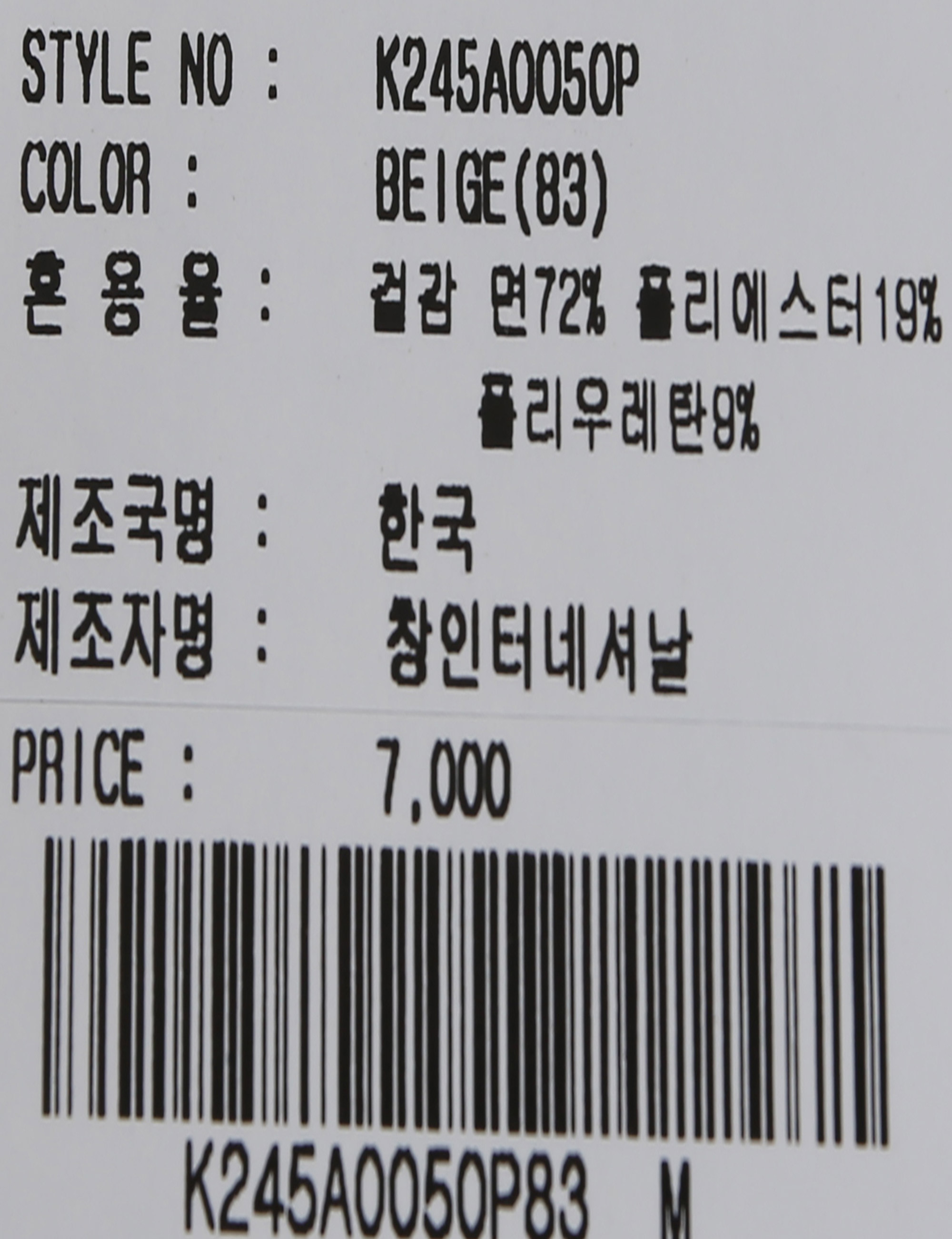 제품소재 [겉감]면72% 폴리에스터19% 폴리우레탄9%
