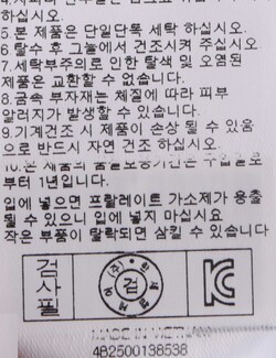| 세탁방법 및 취급시 주의사항 | 본 제품은 손세탁 하십시오.(케어라벨참고) |