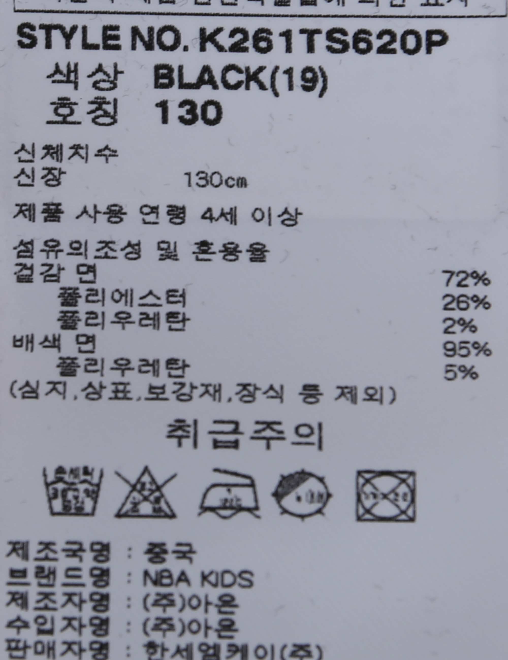 상품명 NBA키즈 여아 레이어드 티셔츠(K261TS620P)