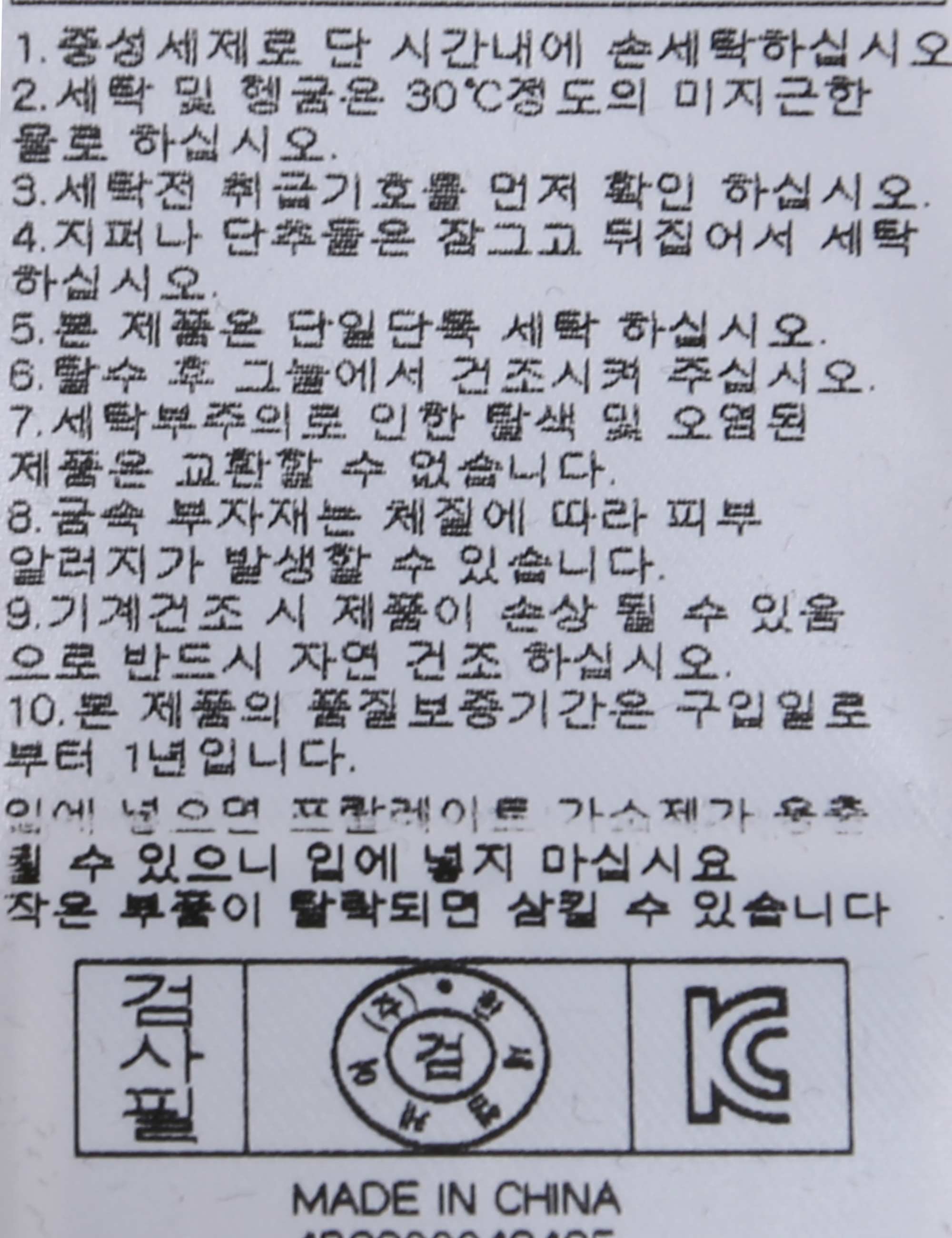 세탁방법 및 취급시 주의사항 본 제품은 손세탁 하십시오.(케어라벨참고)