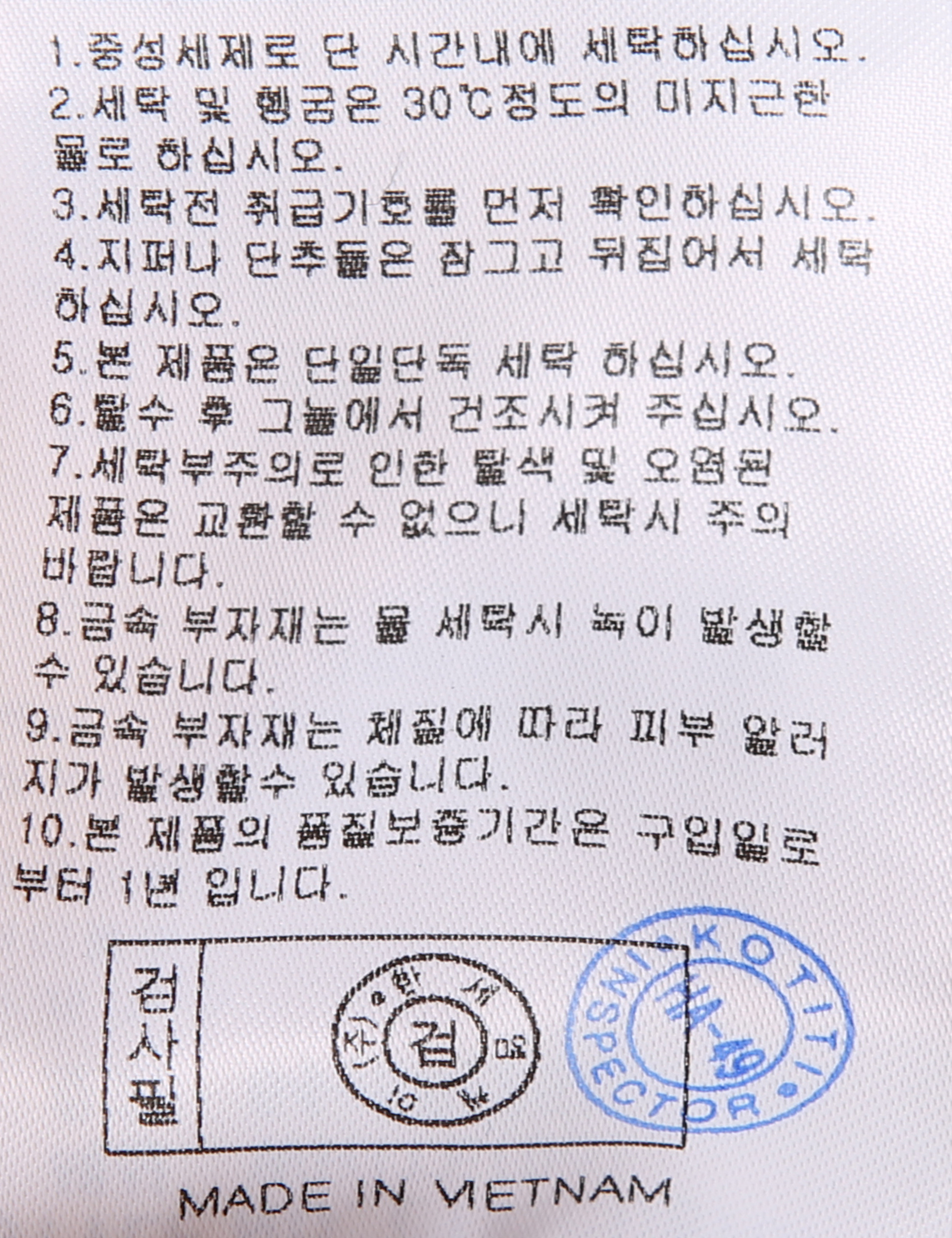 | 세탁방법 및 취급시 주의사항 | 본 제품은 손세탁 하십시오.(케어라벨참고) |