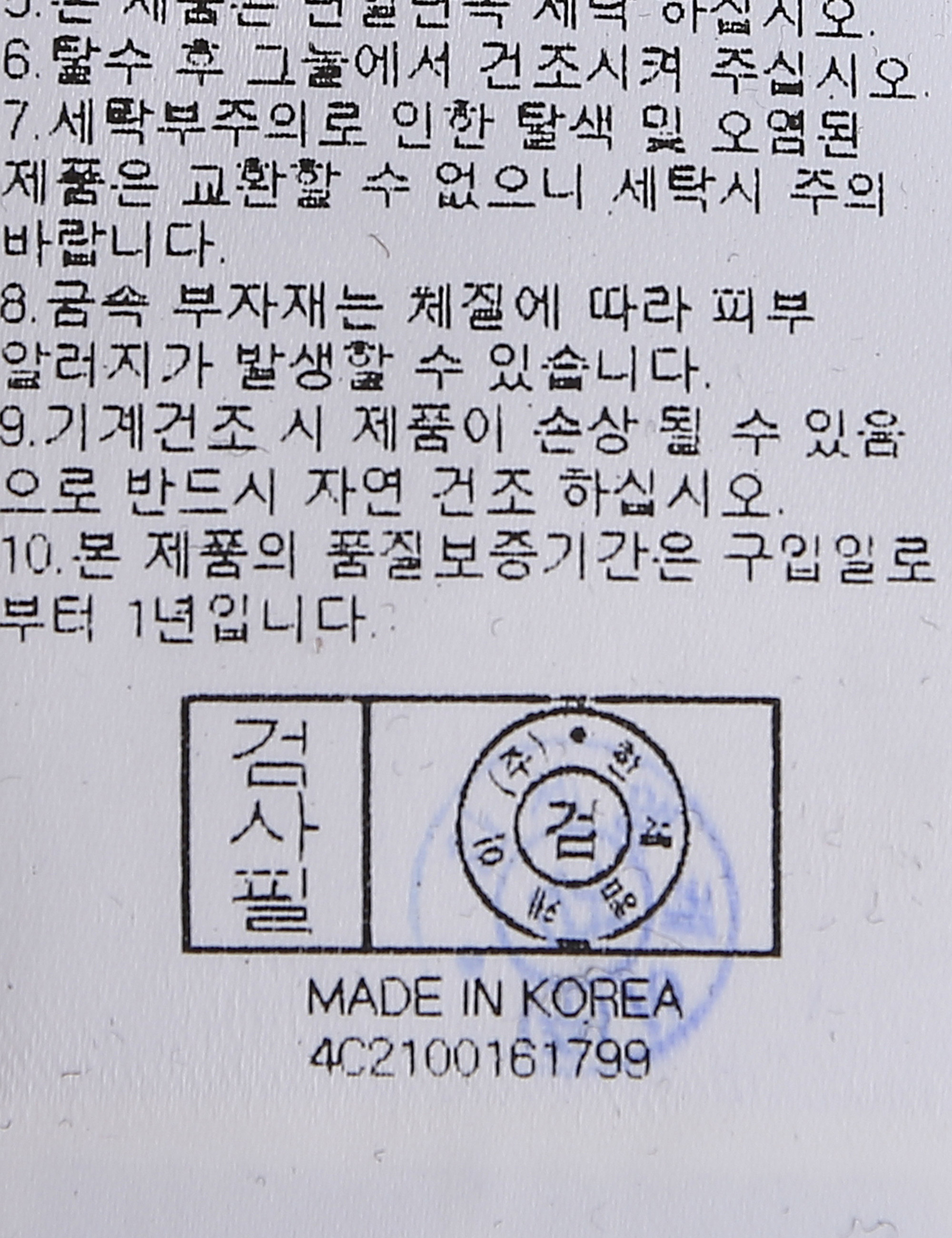 | 세탁방법 및 취급시 주의사항 | 본 제품은 손세탁 하십시오.(케어라벨참고) |