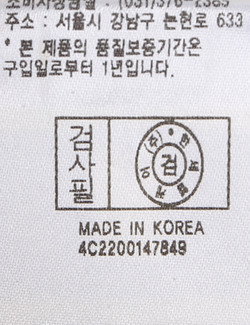 | 취급시 주의사항 | 본 제품은 손세탁 하십시오.(케어라벨참고) |