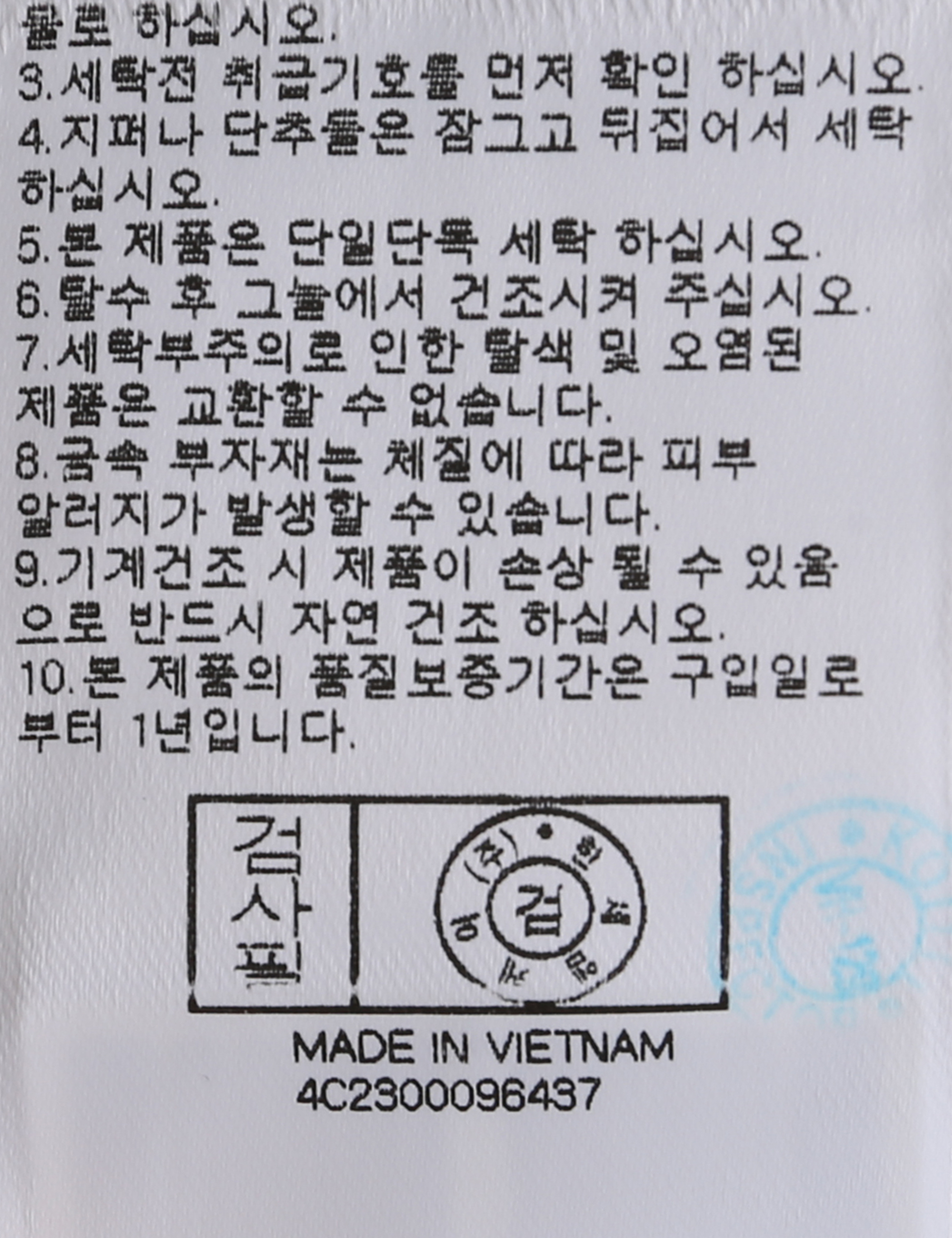 | 세탁방법 및 취급시 주의사항 | 본 제품은 손세탁 하십시오.(케어라벨참고) |
