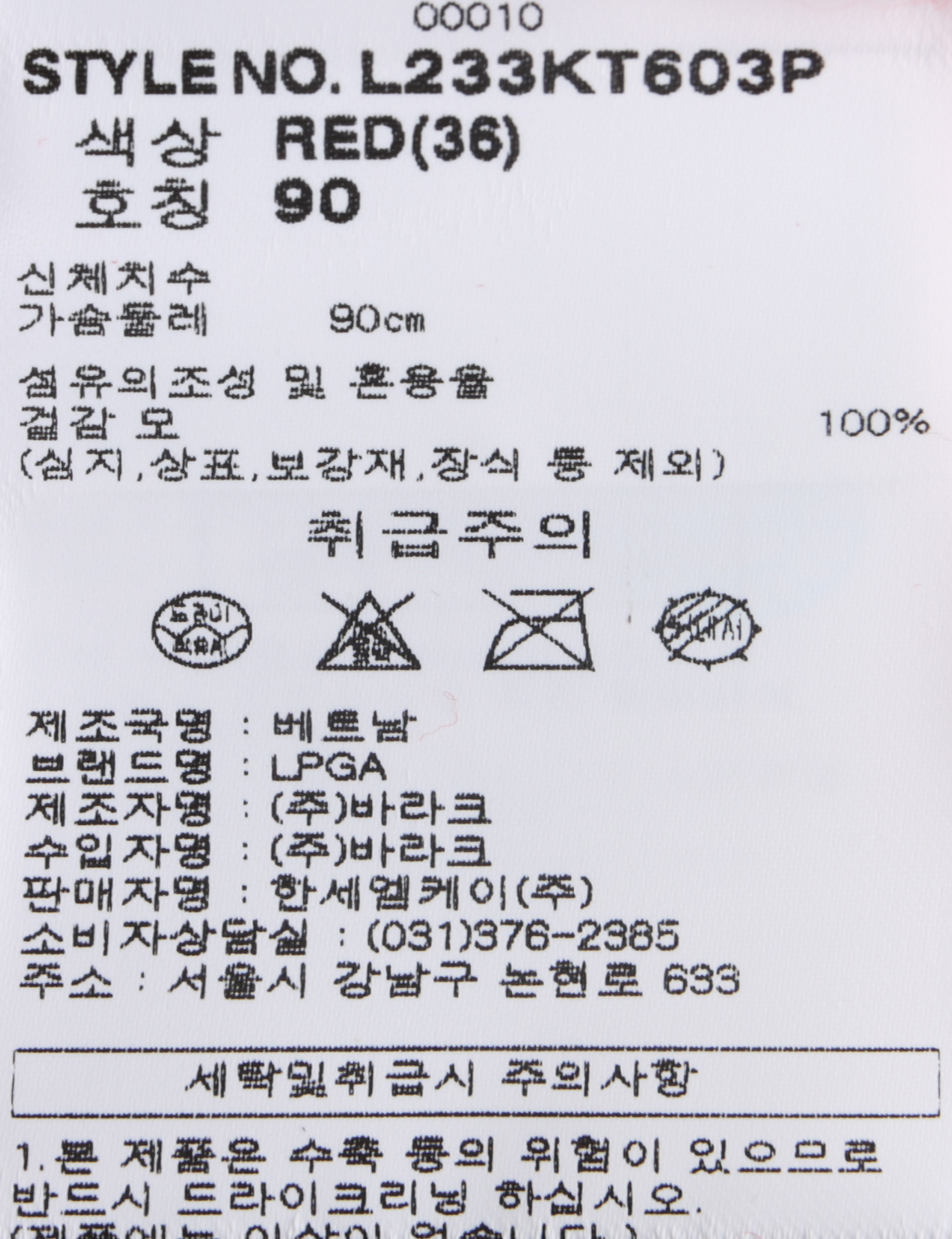 | 상품코드 | L233KT603P |