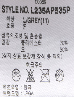 브랜드 홈 바로가기| 제품소재 | [겉감]폴리에스터70% 모30% |