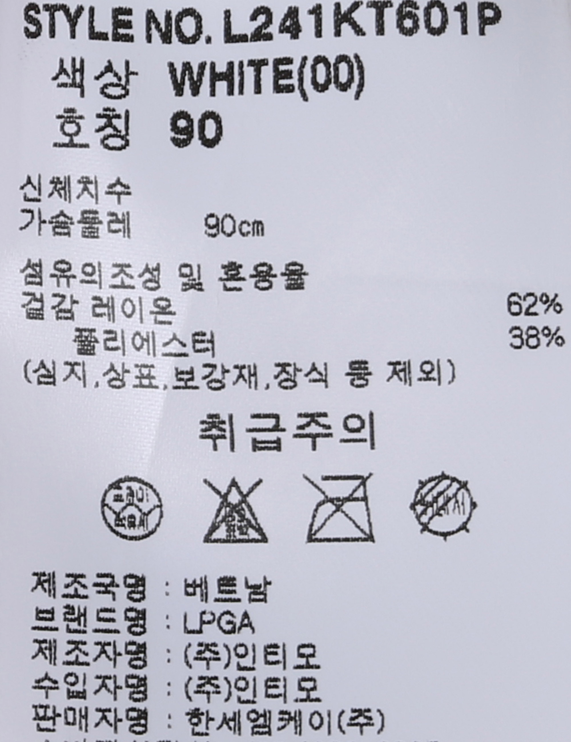 브랜드 홈 바로가기| 제품소재 | [겉감]레이온62% 폴리에스터38% |