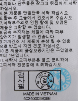 | 세탁방법 및 취급시 주의사항 | 본 제품은 손세탁 하십시오.(케어라벨참고) |