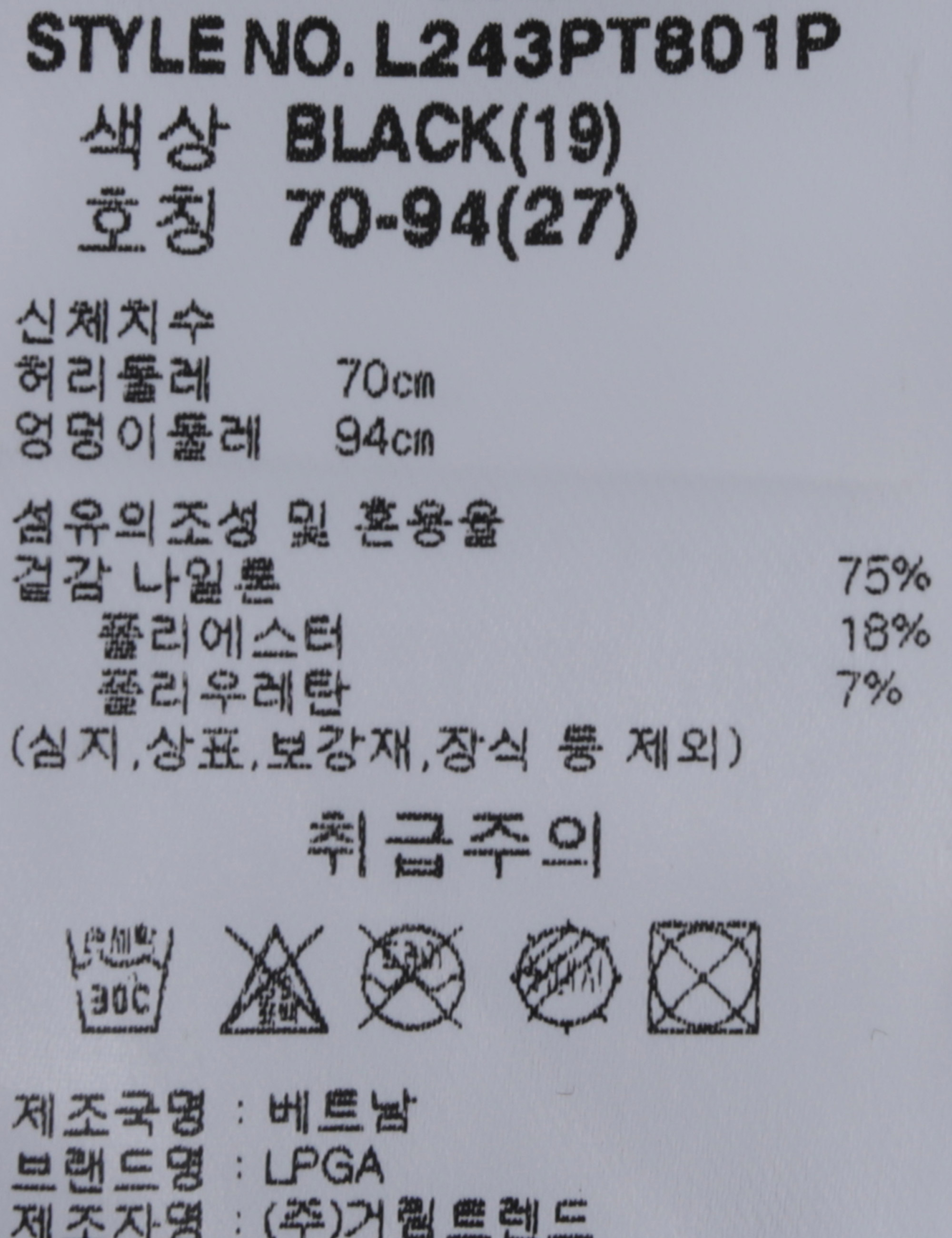| 상품명 | 여성 카본 축열 기능성 팬츠(L243PT801P) |