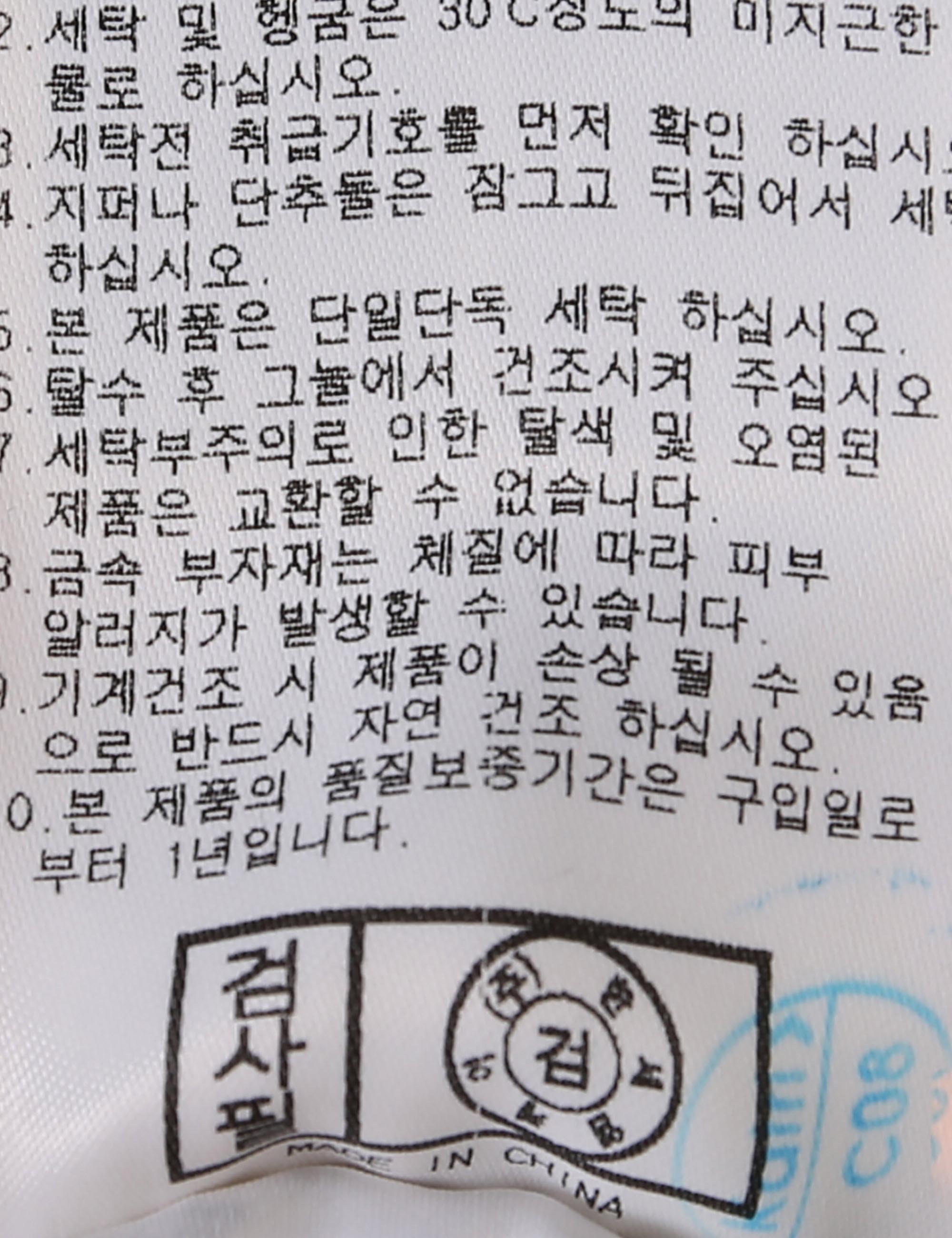| 세탁방법 및 취급시 주의사항 | 본 제품은 손세탁 하십시오.(케어라벨참고) |