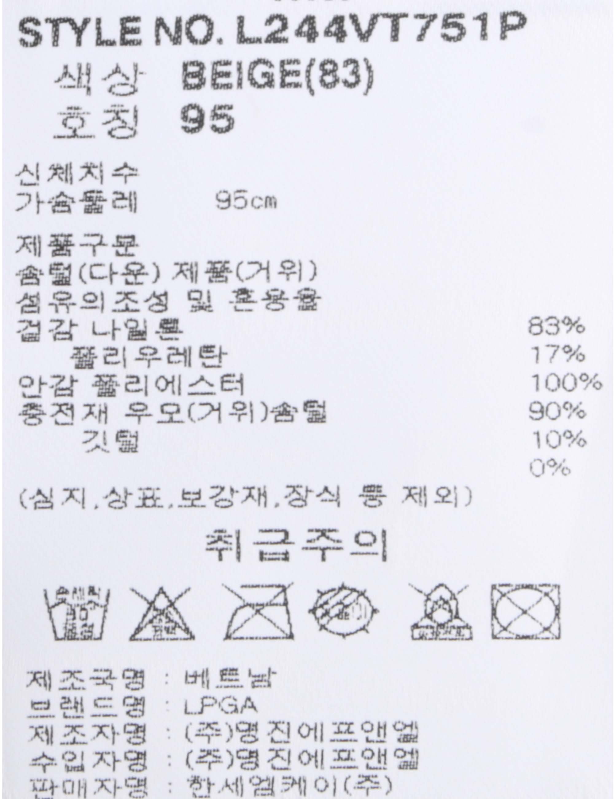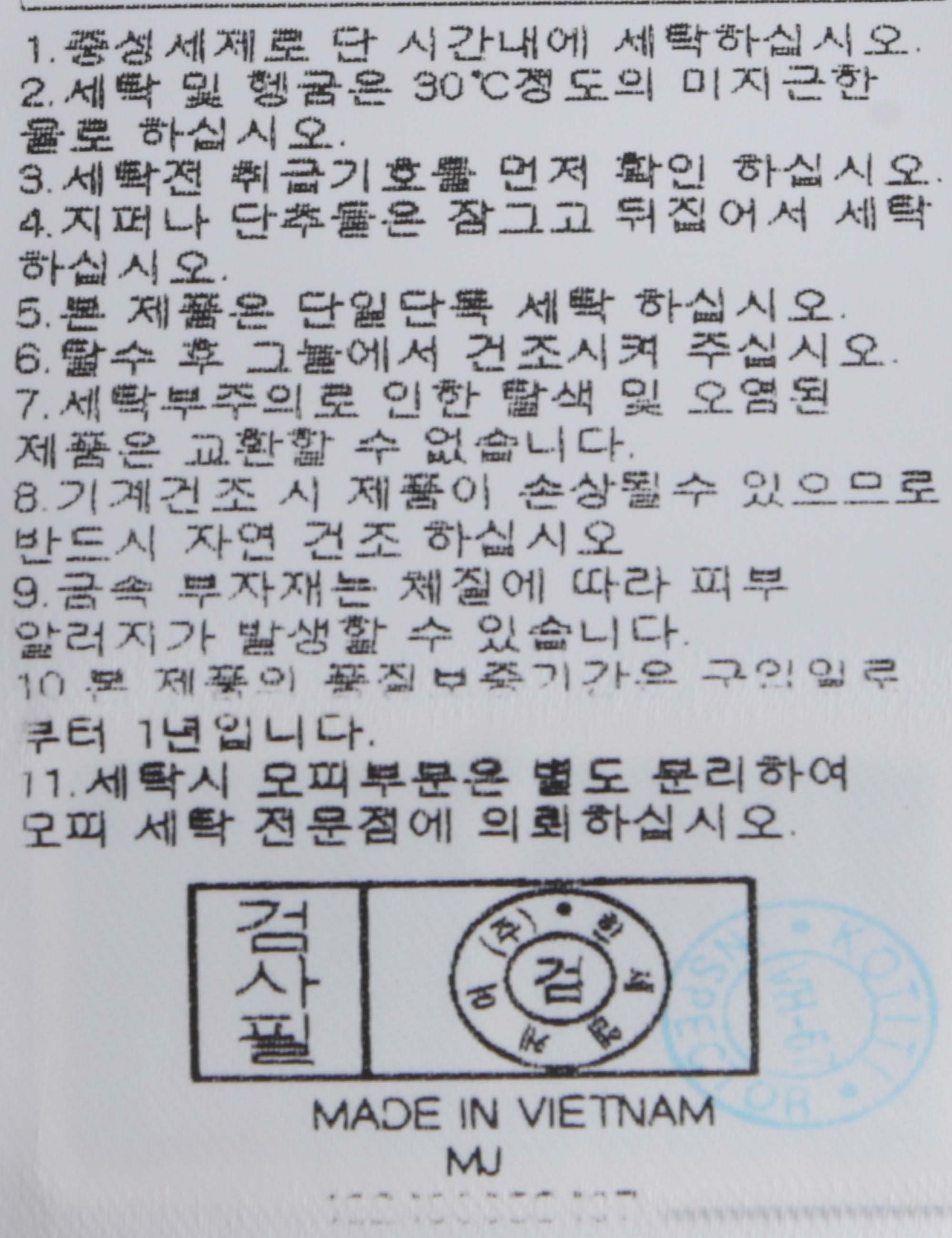 | 세탁방법 및 취급시 주의사항 | 본 제품은 손세탁 하십시오.(케어라벨참고) |