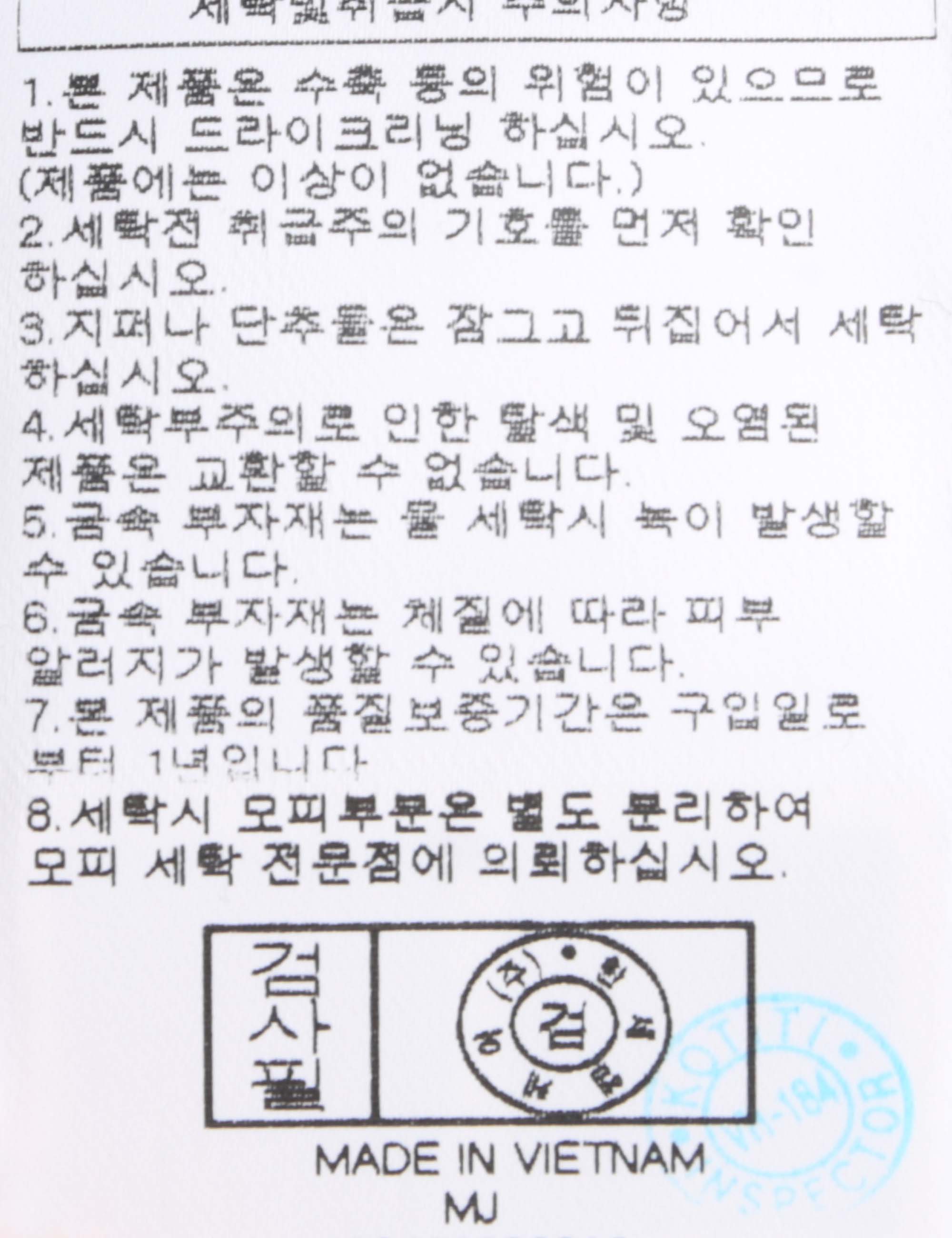 | 세탁방법 및 취급시 주의사항 | 본 제품은 반드시 드라이크리닝 하십시오.(세탁라벨참고) |