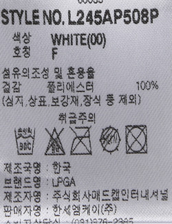 | 취급시 주의사항 | 본 제품은 손세탁 하십시오.(케어라벨참고) |
