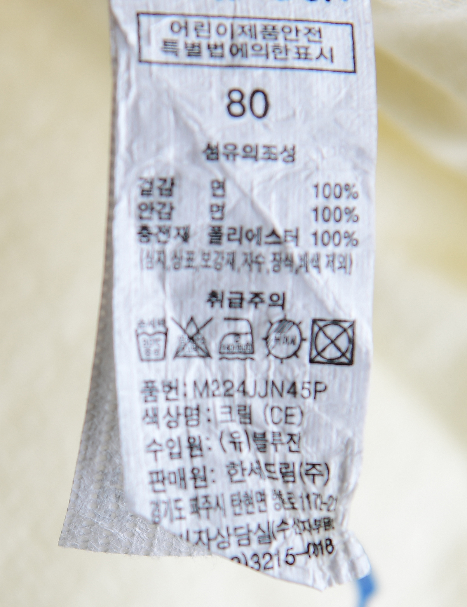 | 세탁방법 및 취급시 주의사항 | 본 세품은 손세탁 하십시오(케어라벨 참고) |