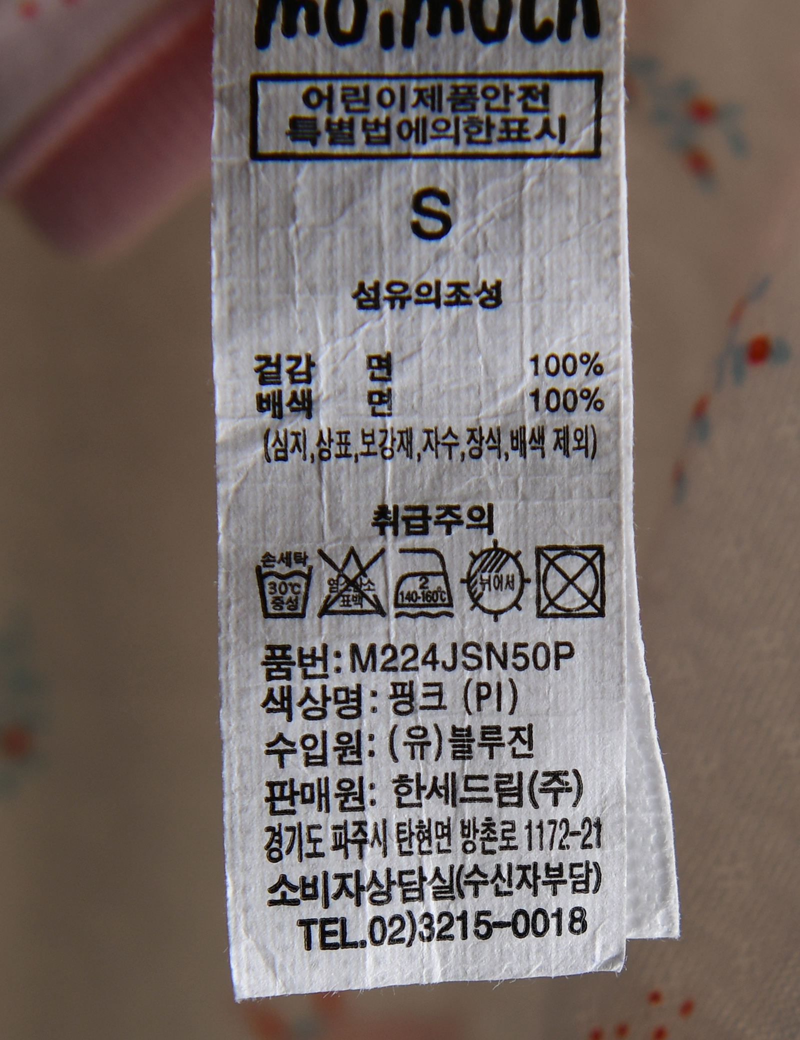 | 세탁방법 및 취급시 주의사항 | 본 세품은 손세탁 하십시오(케어라벨 참고) |