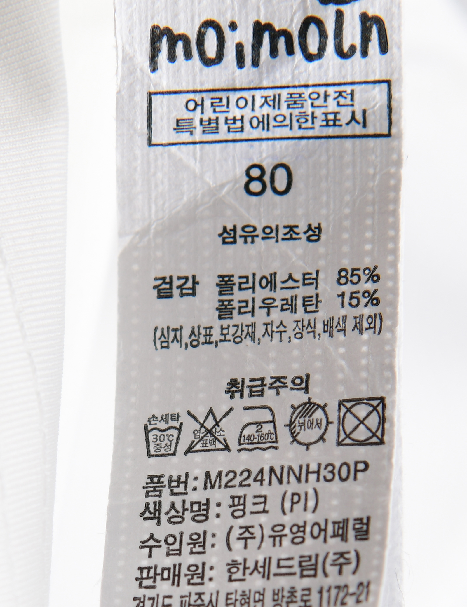 | 세탁방법 및 취급시 주의사항 | 본 세품은 손세탁 하십시오(케어라벨 참고) |