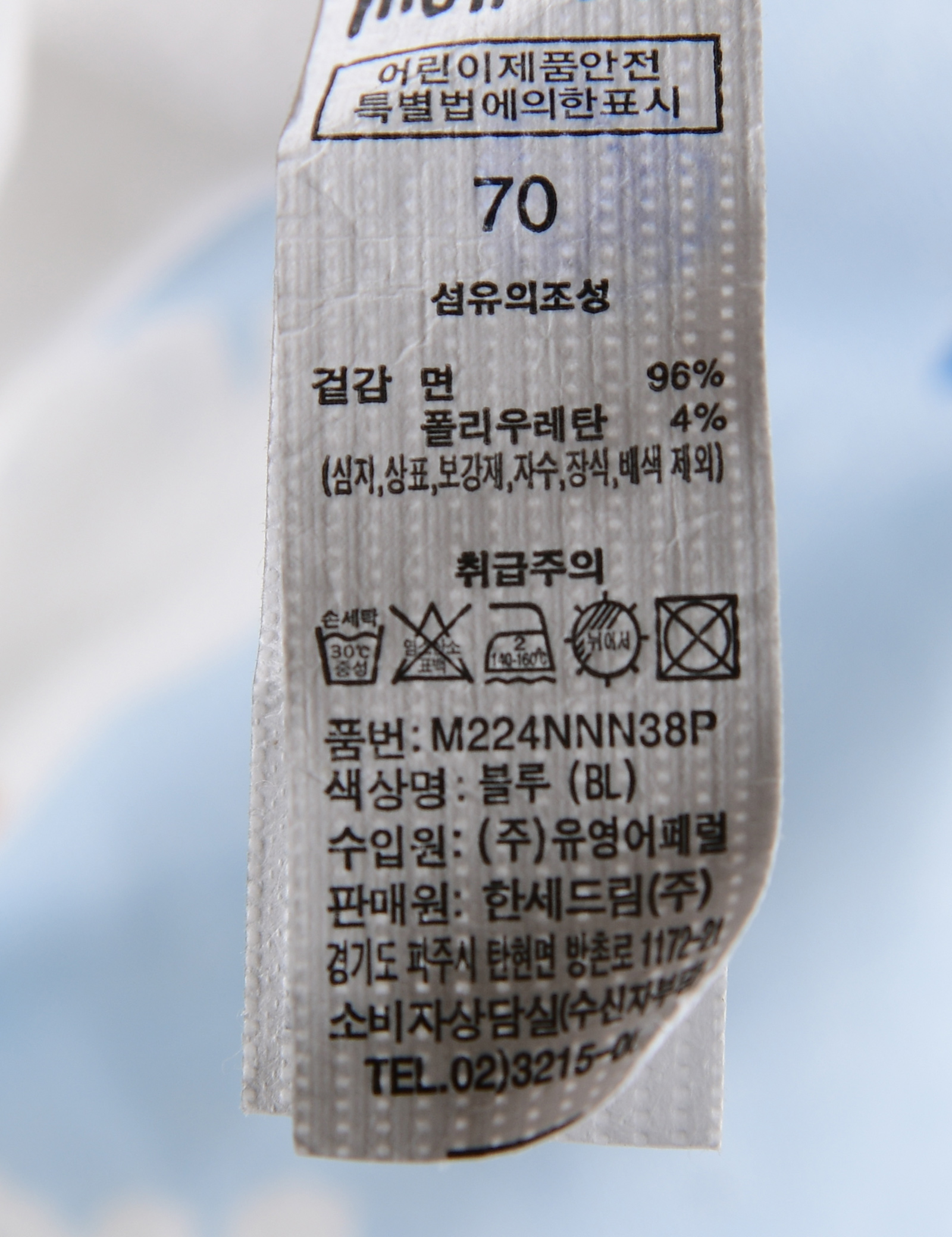 | 세탁방법 및 취급시 주의사항 | 본 세품은 손세탁 하십시오(케어라벨 참고) |
