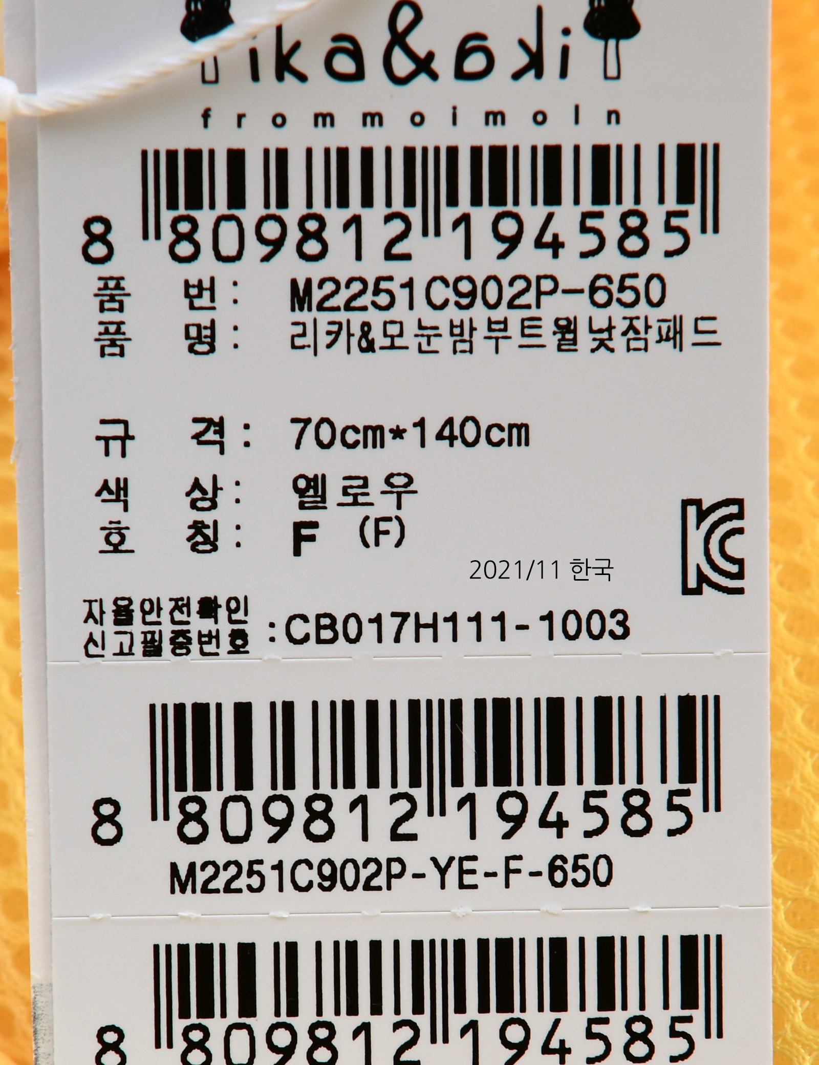 상품명 [모이몰른] 리카&모눈 밤부트윌낮잠패드