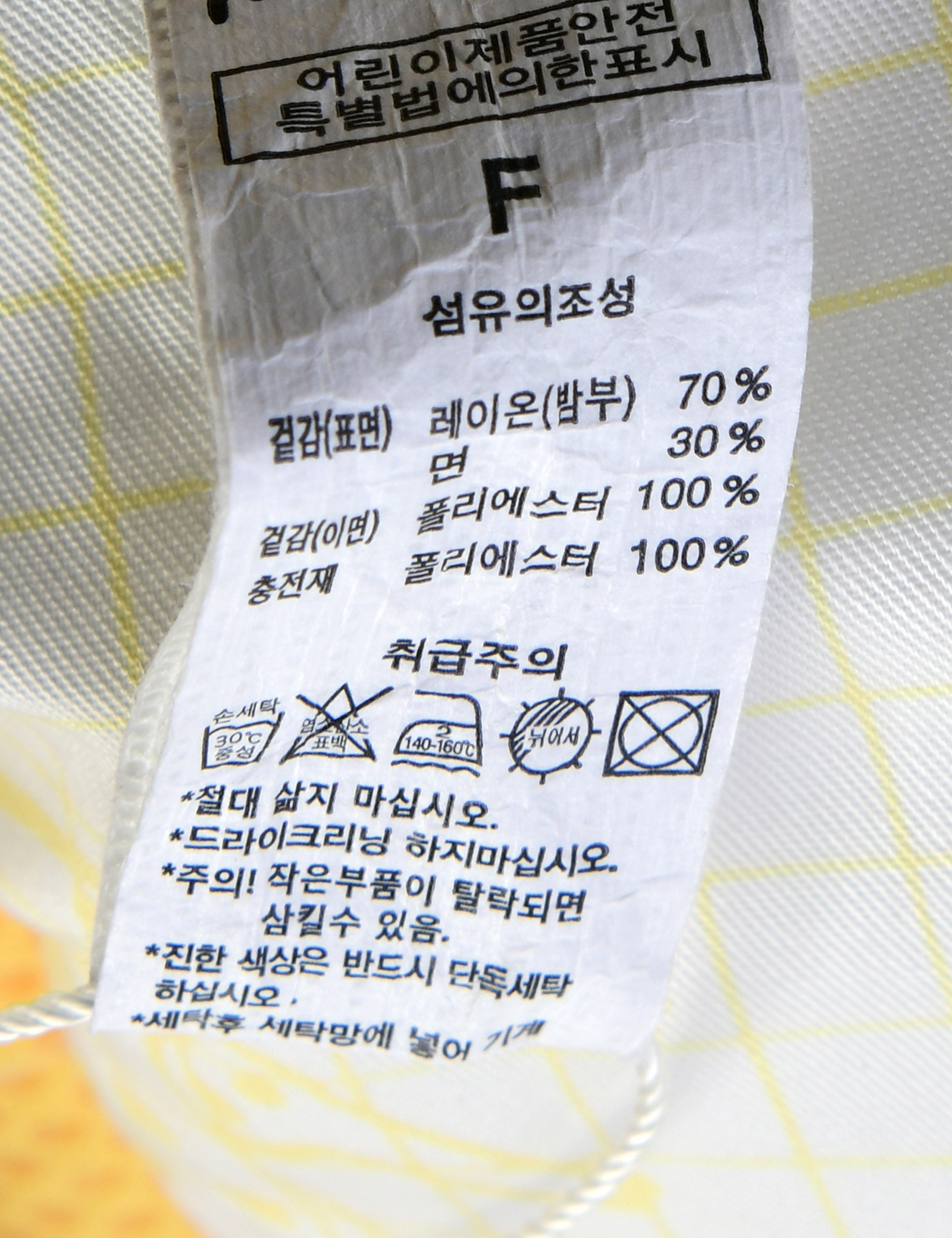 품명 및 모델명 (겉감/표면)레이온(밤부)70%,면30%(겉감/이면)폴리에스터100%(충전재)폴리에스터100%
