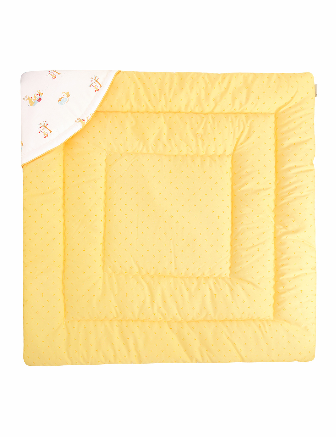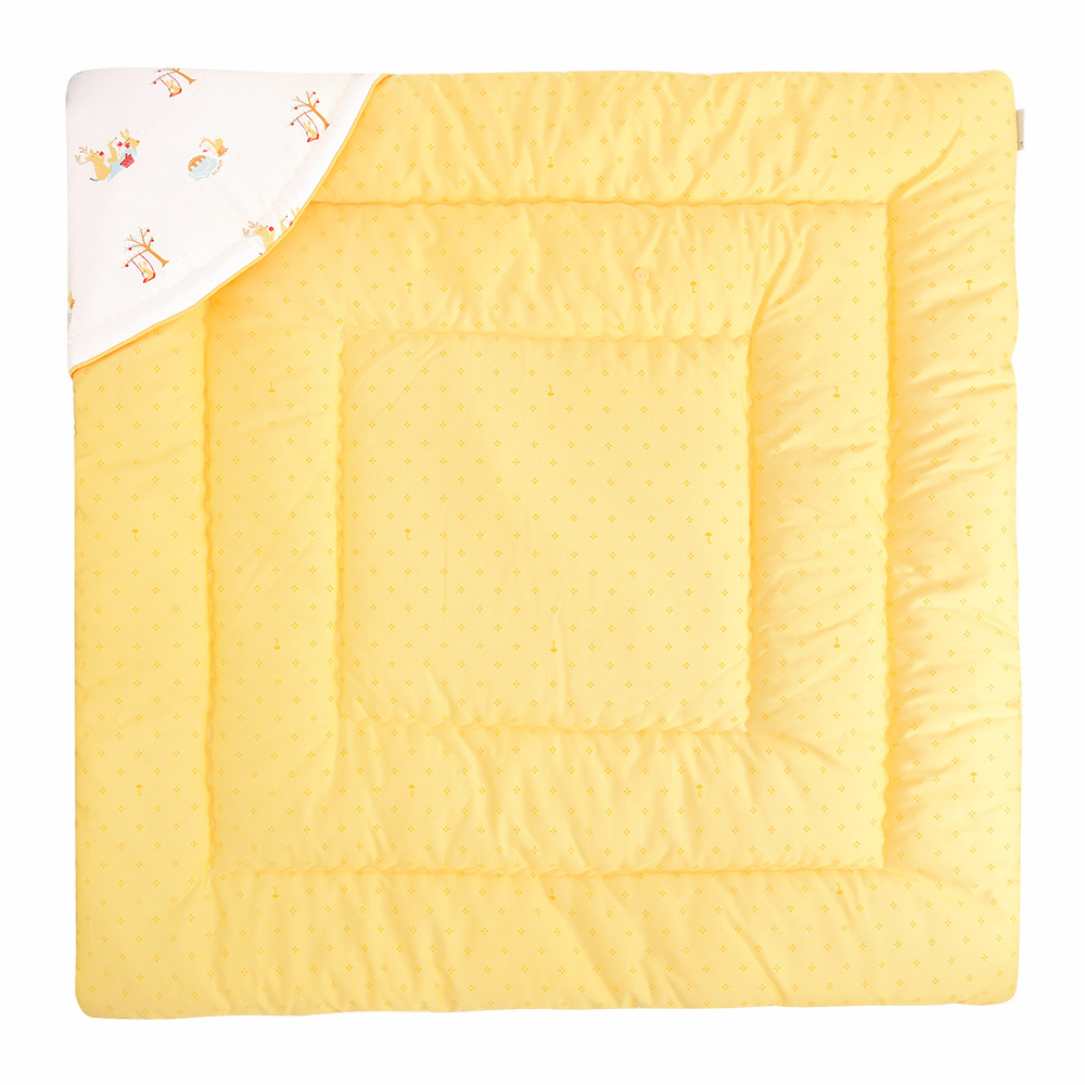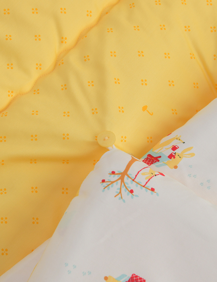 밝은 옐로우 컬러의 1도 나염지가 뒷지로 매칭되어