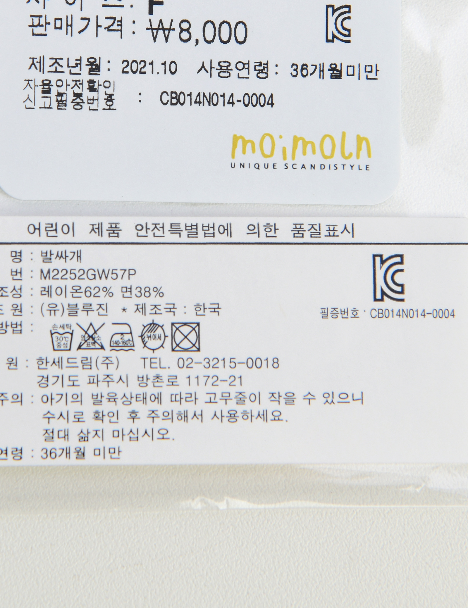 | 제조국 | 한세드림(주) |
