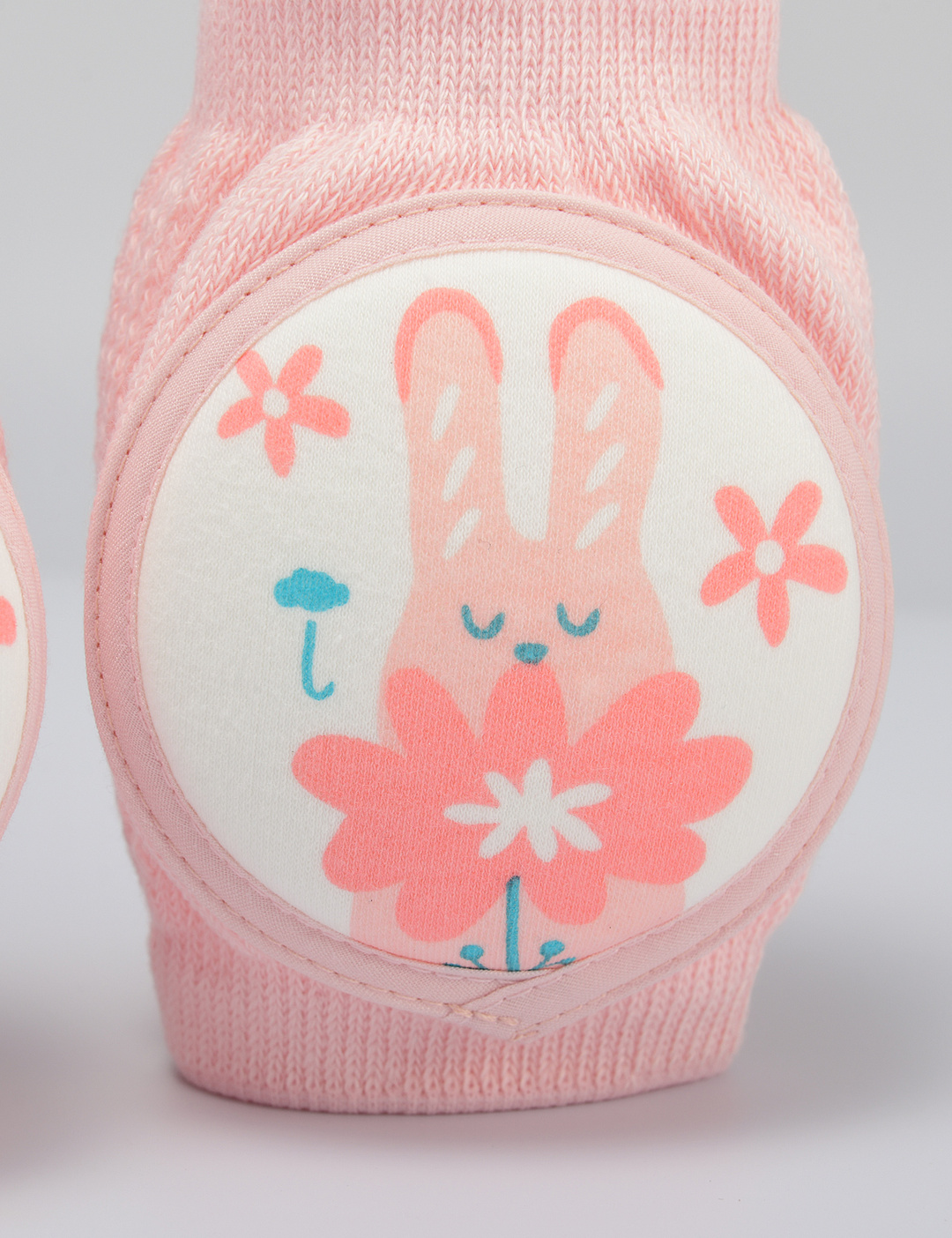 꽃을 끌어안고 있는 토끼 포인트를 이용한 무릎보호대.