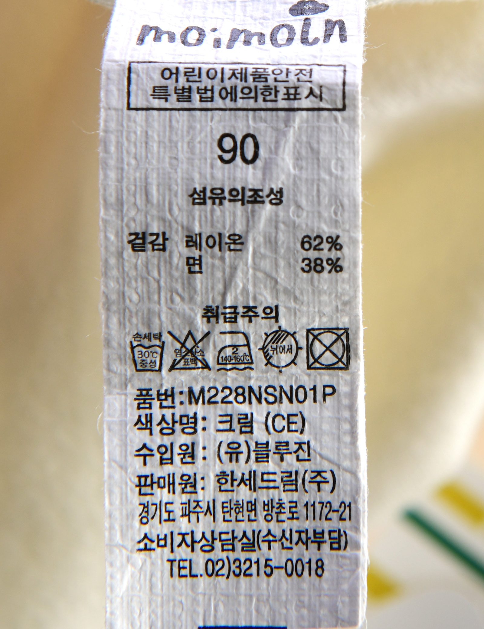 | 세탁방법 및 취급시 주의사항 | 본 세품은 손세탁 하십시오(케어라벨 참고) |