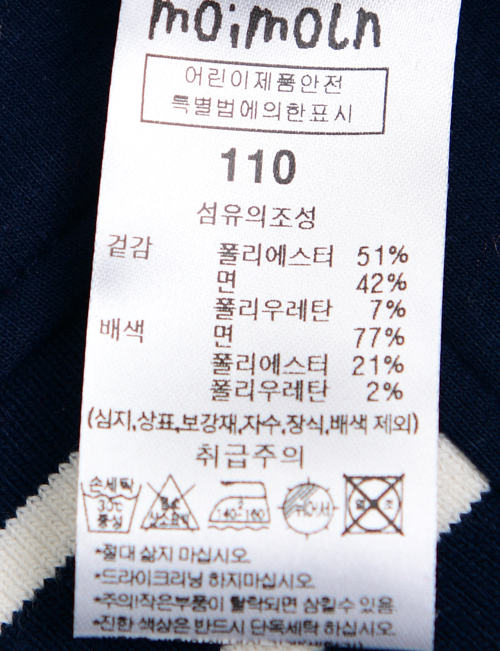 | 세탁방법 및 취급시 주의사항 | 본 세품은 손세탁 하십시오(케어라벨 참고) |